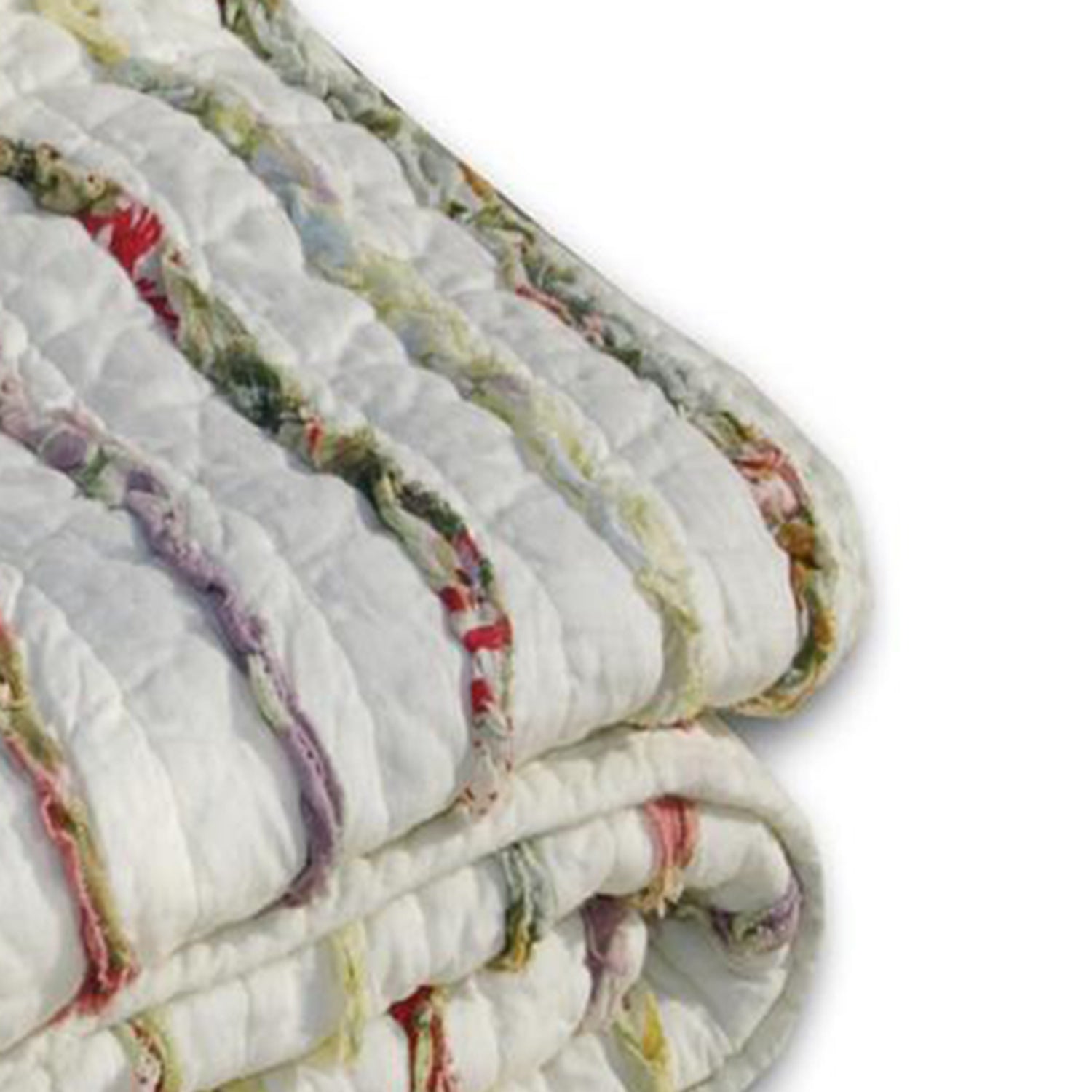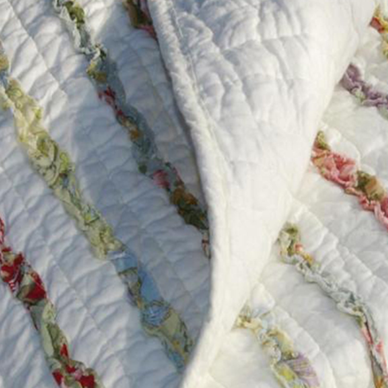Ruffles of floral printed fabrics are carefully sewn to an off-white ground on the face of this frayed edge quilt giving it a shabby chic look and feel Eye-catching yet casual this romantic style for with a variety of colors matches a wide range of color themes. Greenland Home Fashions Bella Ruffle Framed and reversed to a coordinating striped fabric. Finely stitched for durability and scalloped along the edges. Brings shabby chic style with a variety of colors to any room, matching a wide range of color themes. 100-Percent cotton face, back and fill. Prewashed and preshrunk. Recommendation Machine washable. Dimensions: 50"x60", Color: MulticolorHigh Quality Throw Blanket - 50"x60" in Multicolor. Add a splash of color and luxurious comfort to any room with this soft throw blanket The perfect quilt for your cabana or sun chaise. Machine washable 100% Cotton face, back and fill