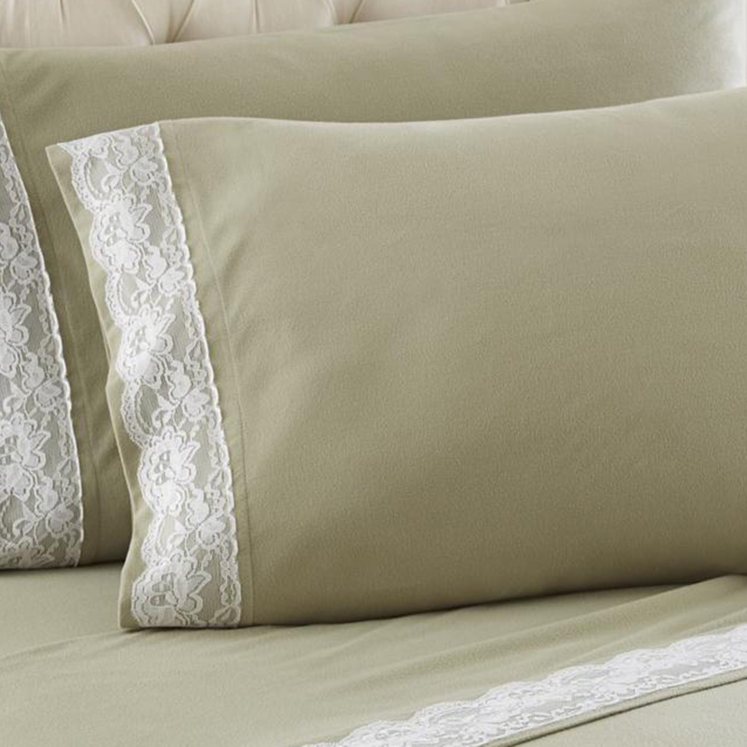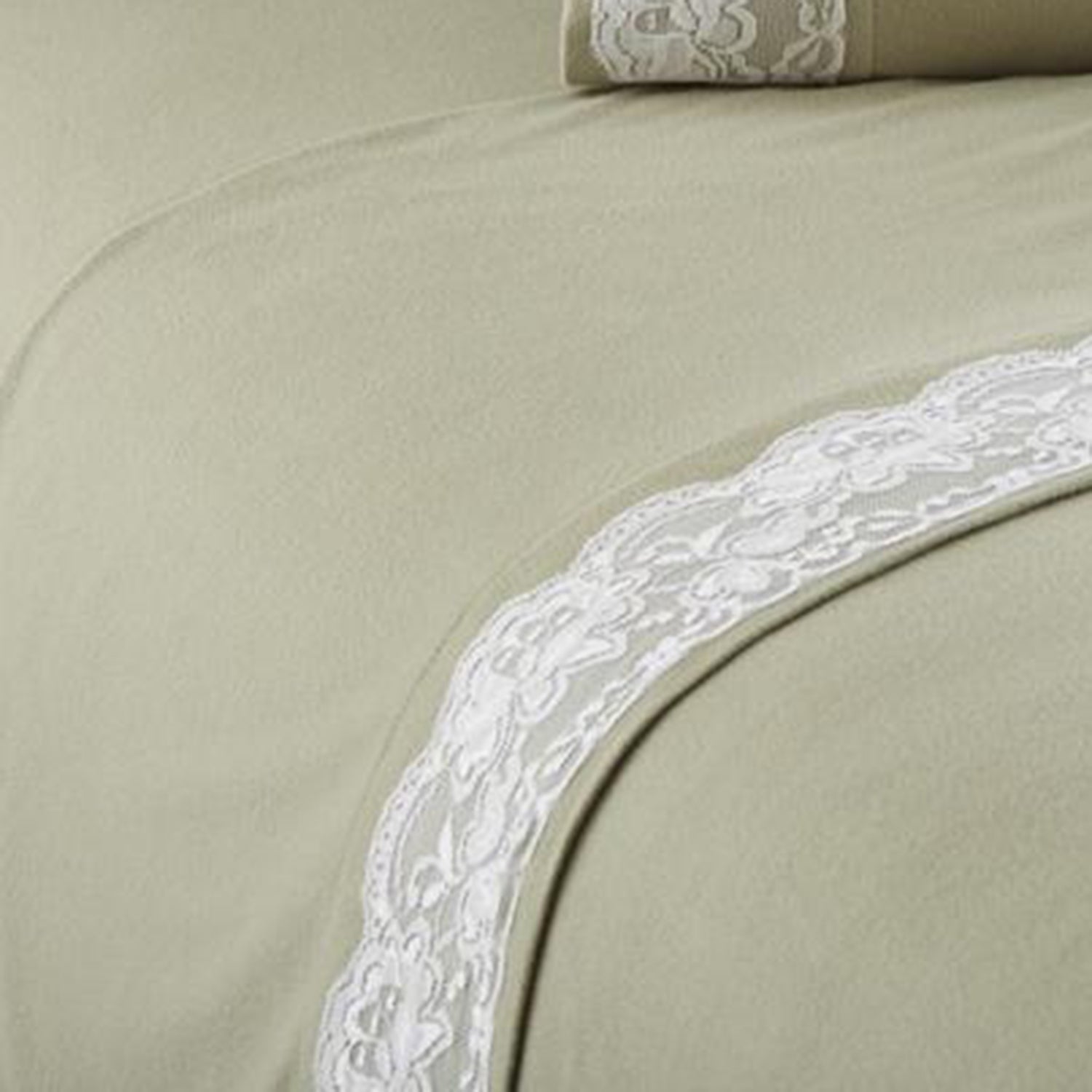 Shavel Micro Flannel Shavel Durable & High Quality Luxurious Lace-Edged Sheet Set Including Flat Sheet, Fitted Sheet & Pillowcase