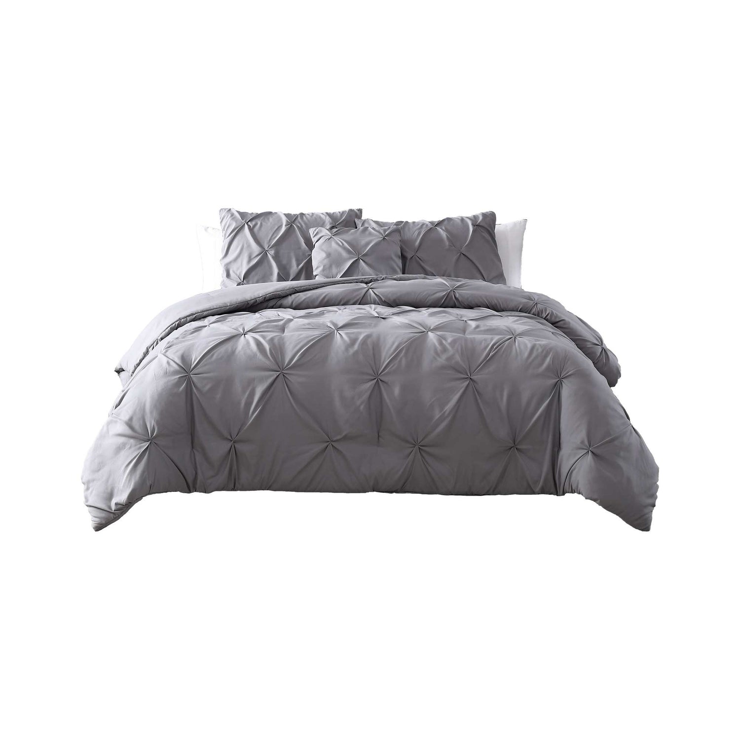The Nesting Company Spruce 4 Piece Comforter set features a pinch pleated design. Its look is achieved by individually sewing pin-tuck across the comforter. The look is both classic and chic, it will elevate the look of both contemporary and traditional bedrooms. Made from super soft Microfiber, perfect for year round use. This set is machine washable for easy care. Product Color: Gray. Product Size: Queen 90 x 90".