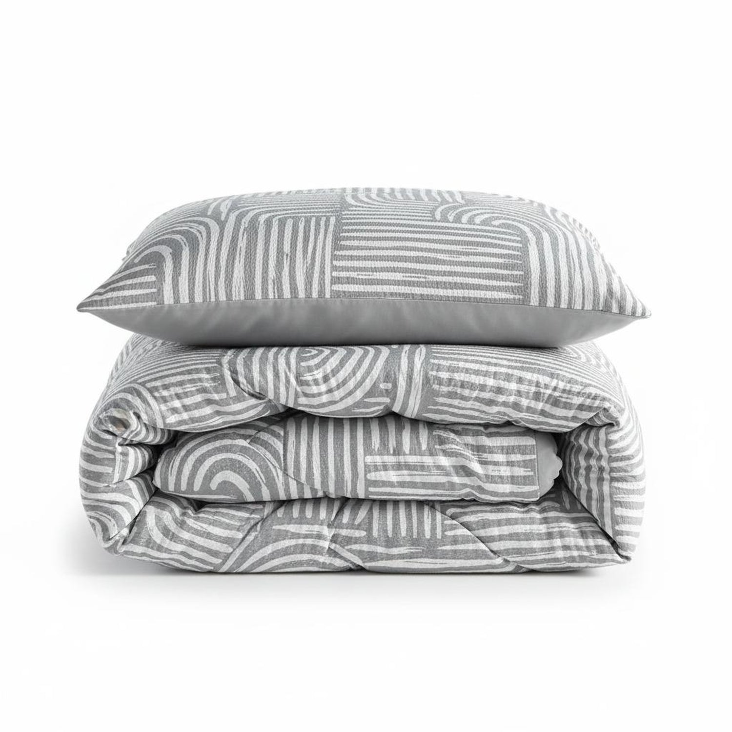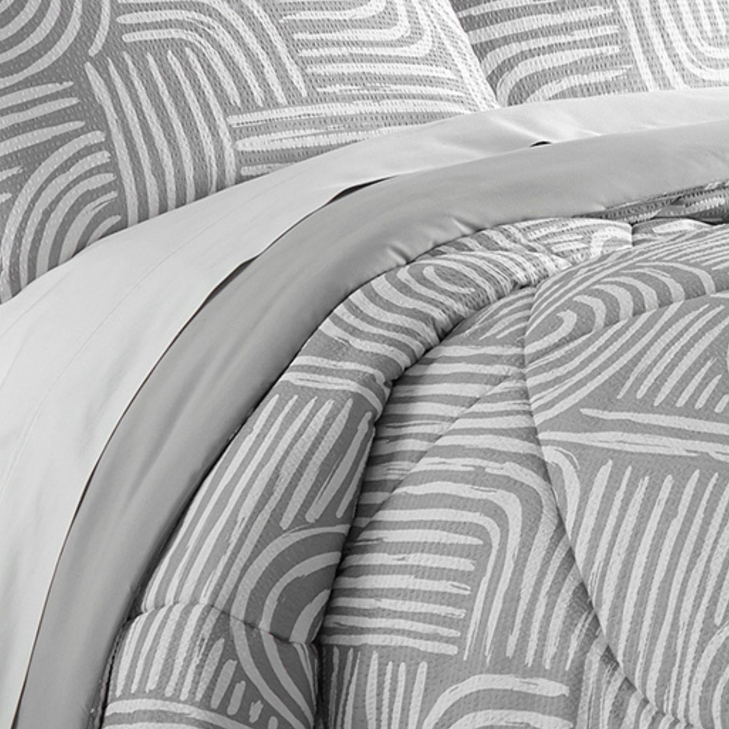 Bring effortless elegance and year-round comfort to bedroom with our Shavel Seersucker Comforter Set, designed to create a serene and refreshing sleep space. The lightweight seersucker texture adds dimension and visual interest, while the modern Brushstrokes Gray pattern brings a soft, contemporary touch that complements a variety of décor styles. Each set includes a generously sized comforter and coordinating sham(s) Twin includes 1 (66x90) comforter and 1 (20x26) sham, Full/Queen includes 1 (90x90) comforter and 2 (20x26) shams, and King includes 1 (102x90) comforter and 2 (20x36) shams. Made from durable 100% polyester, this set resists wrinkles, maintains its smooth appearance, and offers an inviting softness ideal for Spring and Summer. Easy machine-wash care ensures long-lasting use with minimal effort. Certified under OEKO-TEX Standard 100 Certificate No. SHKO 114426, this comforter set provides added peace of mind, making it a perfect choice for any home, guest room, or vacation.PREMIUM FABRIC: Crafted with polyester with a lightweight seersucker texture, comforter set offers a breathable, comfortable feel. The textured design adds visual depth while maintain smooth, wrinkle resistant finish that enhances bedroom style. SET COMPONENTS: Each size includes a perfectly sized comforter and matching sham(s) for a polished and cohesive look. Twin includes one sham, Full/Queen includes two standard shams, and King includes two larger shams. MODERN AESTHETIC: Featuring the Brushstrokes Gray design, this set brings a calm, contemporary atmosphere to space. Its soft cool toned palette blends effortlessly with both minimal and decorative interiors, making it suitable for home, guest rooms. CERTIFICATION: Certified under OEKO TEX Standard 100 with Certificate No. SHKO 114426, this comforter set meets strict guidelines for quality and safety. The materials are thoughtfully tested to ensure they are gentle against the skin. EASY CARE USE: Designed for low maintenance living, this comforter set is machine washable for convenient cleaning. The wrinkle resistant fabric helps maintain a smooth look straight from the dryer, allowing you to enjoy fresh.