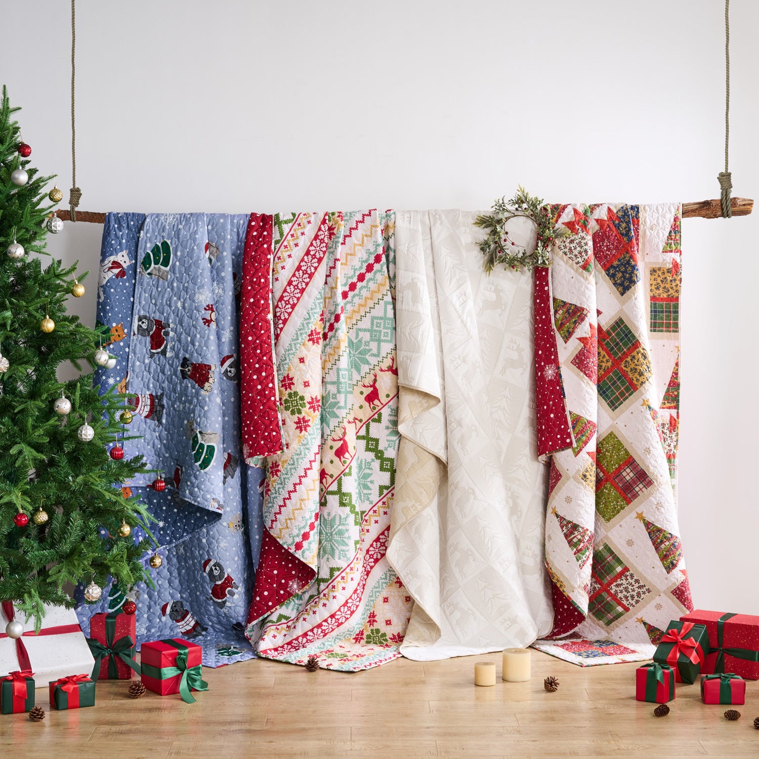 Add festive warmth to your home with the Greenland Home Fashion Deck the Halls accessory throw in Red. Measuring 50x60 inches, this cozy holiday throw is crafted with a 100% cotton face, microfiber back, and polyester fill for lasting comfort. Its patchwork-inspired design features stylized Christmas trees and wrapped presents surrounded by golden snowflakes on a snowy white ground. The reverse offers cheerful red with falling snowflakes, giving you two looks in one. Prewashed and pre-shrunk for a snug, comfortable fit, this quilted throw makes the perfect accent for bedrooms, guest spaces, or living areas. OEKO-TEX® certified and free from harmful substances, it combines safety with festive style, creating a joyful seasonal highlight you’ll love to use year after year.DURABLE MATERIAL: Made with a 100% cotton face, soft microfiber back, and polyester fill, this holiday throw delivers durability and comfort. Its quilted construction ensures warmth and long-lasting quality perfect for seasonal e in any room. INCLUDING ITEMS: Each purchase includes one Deck the Halls accessory throw blanket in a festive Red colorway. Measuring 50x60 inches (+/- 2 inches), it is the perfect size for layering, cuddling, or holiday decorating. VERSATILE DESIGN: Reversible style provides two festive looks—one side with Christmas trees, presents, and snowflakes, and the other with a bold red background and cheerful snow motif, allowing you to easily refresh your holiday décor. REVERSIBLE STYLE: Designed with versatility, the throw offers one patterned side bursting with Christmas charm and one solid seasonal reverse, letting you enjoy two styles in one piece. This makes it easy to decorate with changing moods or themes. EASY MAINTENANCE: Prewashed and pre-shrunk for immediate comfort, this throw is also machine washable for stress-free cleaning. OEKO-TEX® certified, it ensures safety while maintaining softness, vibrant colors, and durability over many washes.