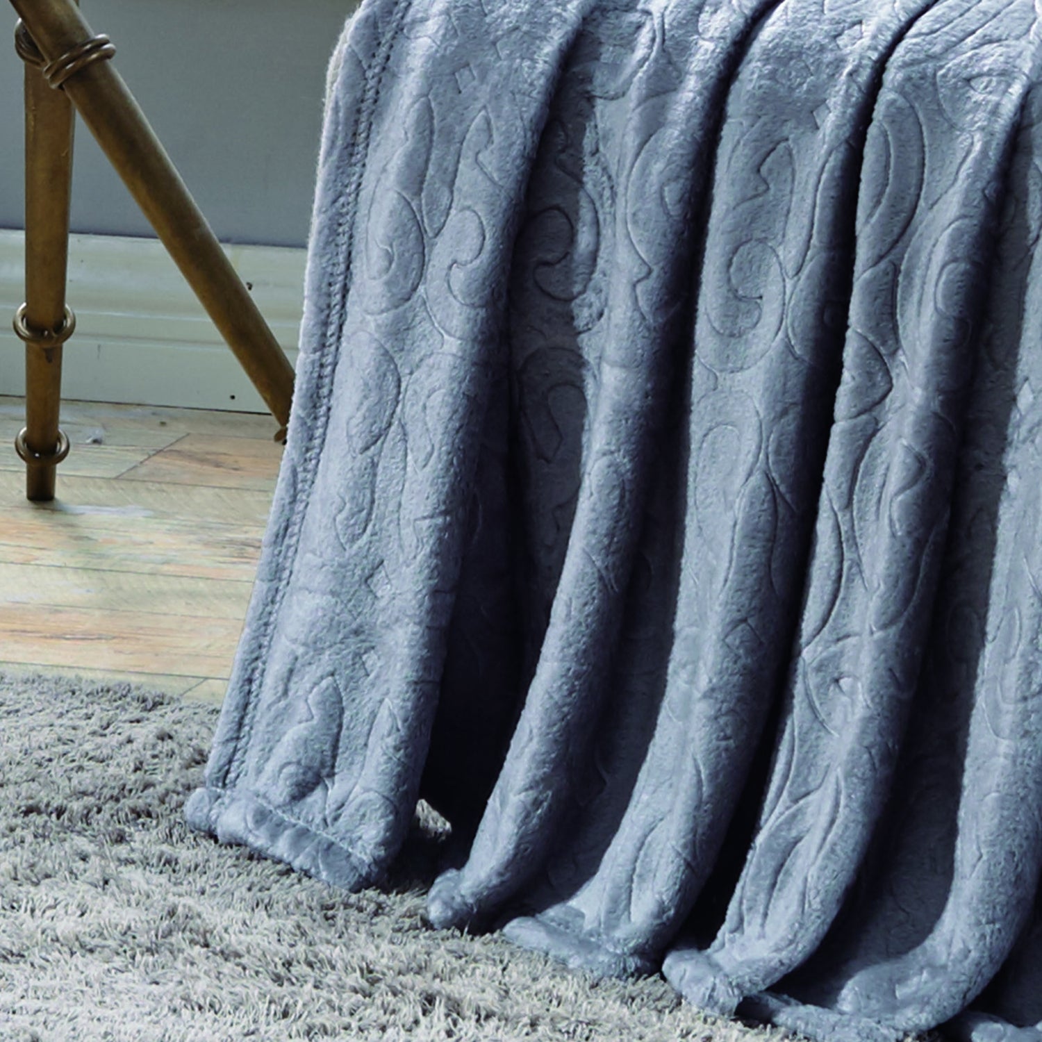 Plazatex Dama Embossed Decorative Super Soft Throw Blanket for Sleep/Decor 2 Pack 50" x 60" Grey