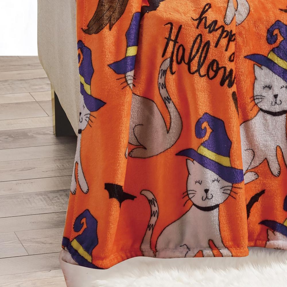 Plazatex Halloween Cats plush Decorative Halloween Machine Washable Throw 50" X 60" Orange