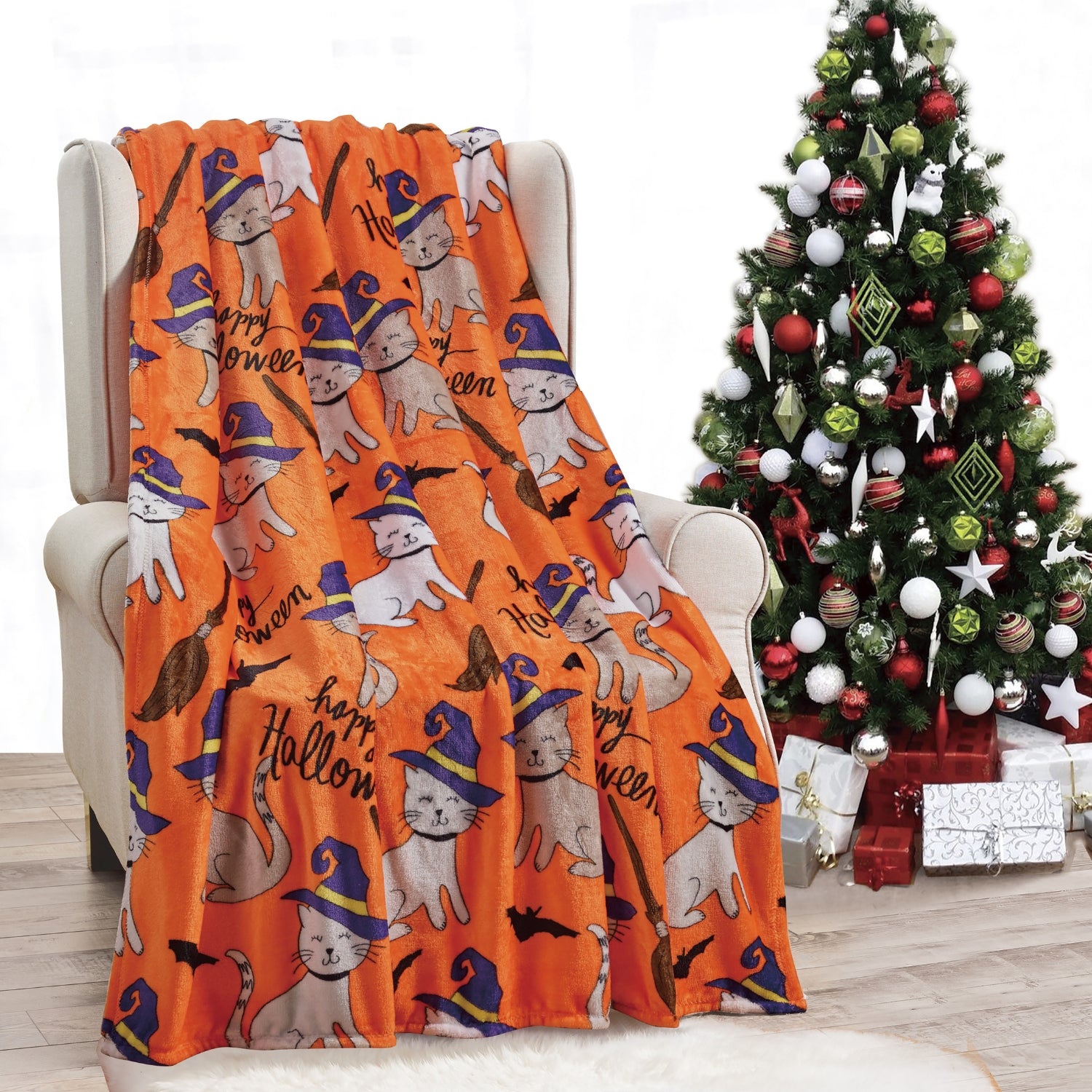These throw blankets are designed for style and comfort. Bring the love to your home with this ultra-soft Halloween Cats plush throw blanket. This plush throw will allow you to relax and unwind under its warmth and comfort. Perfect for snuggling with family while enjoying a hot cup of coffee or hot cocoa and watching television. Ultra-soft material and elegant colors bring a calm and elegant touch to any room. Super soft and has a great bold print. It's very lightweight and supremely soft. Great as a gift to a friend or family. It also has durable warmth on cold nights. This is made from soft knitted fabric 100% polyester. It keeps you warm and cozy while providing softness to the touch. Perfect for lounging on a couch. When the blanket gets dirty or you're changing up the interior design of a room, machine wash it for simple cleaning. Makes a great gift. This throw measures 50" X 60". Color: Orange