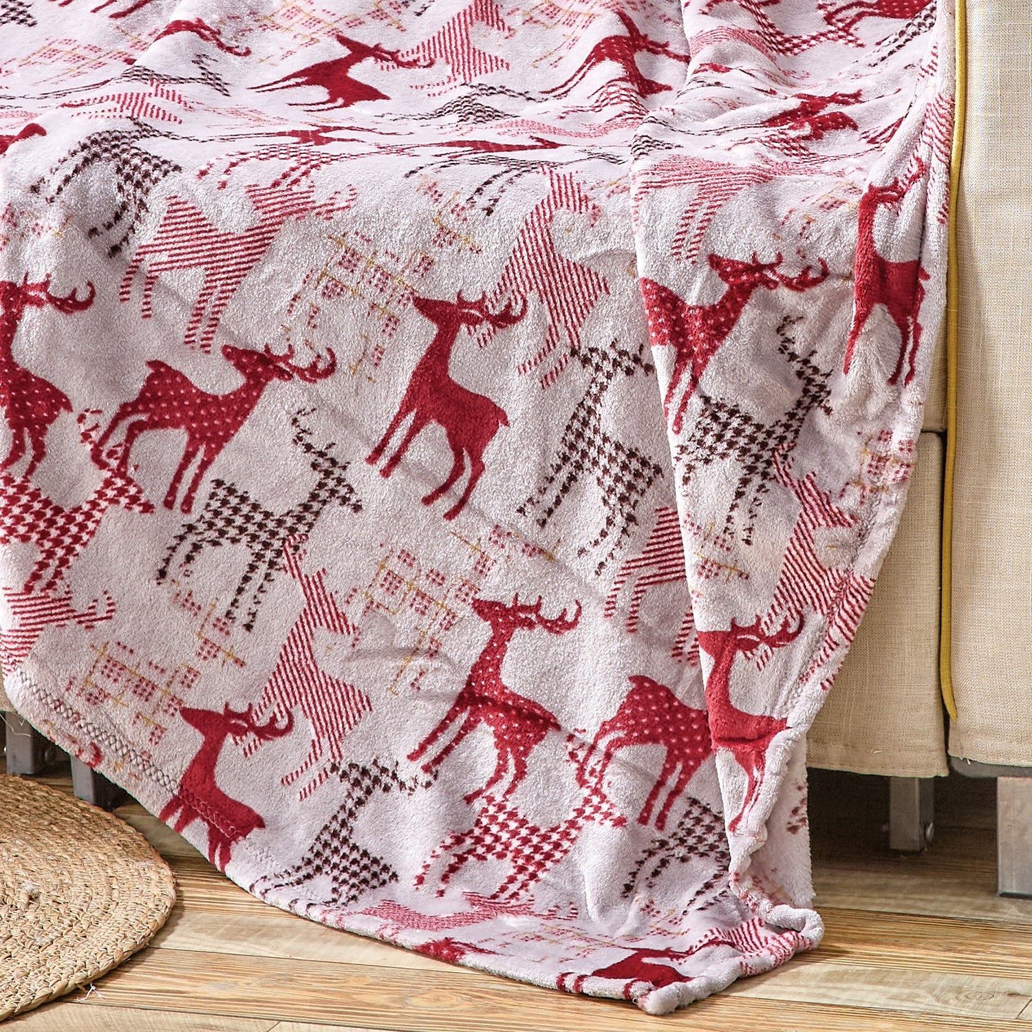 This throw blankets are designed for style and comfort. Bring the love to your home with this ultra-soft Tan Reindeer plush throw blanket. This plush throw will allow you to relax and unwind under its warm and comfortable. Perfect for snuggling with family while enjoying a hot cup of coffee or hot cocoa and watching television. Ultra-soft material and elegant colors bring a calm and elegant touch to any room. Super soft and great bold print. Its very lightweight, supremely soft. Great as a gift to friend or family. It also durable warmth on cold nights. Materials: made from soft knitted fabric 100% polyester. It keeps you warm and cozy while providing softness to the touch. Perfect for lounging on couch. Measuring at 50" x 60". Care instruction: when the blanket gets dirty or you're changing up the interior design of a room, machine wash it for simple cleaning. Makes a great gift!!LUXURIOUS SUPER SOFT MATERIAL: This throw blanket is made with 100% premium quality polyester for amazing comfort and a cozy feel EXCEPTIONAL COMFORT: The throwa are made with soft, breathable fabrics that gently hug your body, providing just the right amount of warmth and comfort CONTEMPORARY DESIGN: The fabric design is up to the top. It's great for lounging on the couch while watching TV, or gathering with family and friends EASY TO CARRY: The throw blanket is so lightweight and soft that it is easy to carry with you anywhere EASY CARE: The throws are not only incredibly comfortable but also remarkably convenient. They are machine-washable and dryer-safe, ensuring hassle-free care and maintenance
