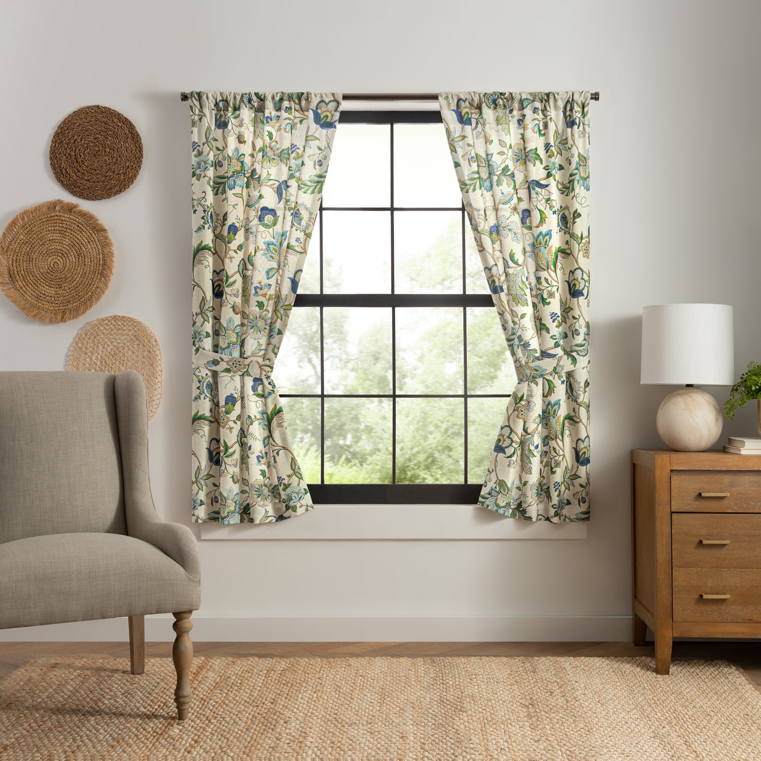 Enhance your windows with the Ellis Curtain Brissac Rod Pocket Tailored Pair, designed to combine classic style with practical functionality. Crafted in a vibrant Blue color, these tailored panels feature a colorful Jacobean-inspired pattern that adds visual interest to any room. Measuring 70x63 inches, they provide generous coverage for standard-sized windows while creating a clean, polished look. The 3-inch rod pocket allows for easy installation on most standard curtain rods and produces evenly spaced, elegant folds. Made from 100% polyester, the panels are durable, long-lasting, and maintain their vibrant color over time. The lined fabric gently filters light while offering privacy, and machine washable construction ensures convenient care. Perfect for living rooms, bedrooms, or dining areas, this tailored pair blends style, function, and ease of maintenance in one refined curtain solution.DURABLE MATERIAL: Made from 100% polyester, these tailored panels provide lasting durability while retaining a smooth, soft texture. The sturdy fabric resists wear and fading, ensuring the vibrant Blue color and Jacobean pattern remain striking. ELEGANT LIGHT FILTER: The fabric gently filters natural light to create a warm and inviting atmosphere. It helps reduce glare while maintaining brightness in the room, offering an ideal combination of privacy and illumination. SIMPLE INSTALLATION: Featuring a 3-inch rod pocket, these panels slide easily onto most standard curtain rods. The design allows for even, graceful folds that enhance the polished, tailored appearance of your windows. VERSATILE DESIGN: Measuring 70x63 inches, this curtain pair fits standard window sizes and complements a variety of décor styles. The colorful Jacobean-inspired pattern and Blue tone add a bold yet sophisticated accent to traditional interiors. EASY MAINTENANCE: Machine washable for convenience, these polyester panels retain their color, structure, and pattern even after repeated washing. The low-maintenance fabric ensures a fresh, well-kept look with minimal effort.