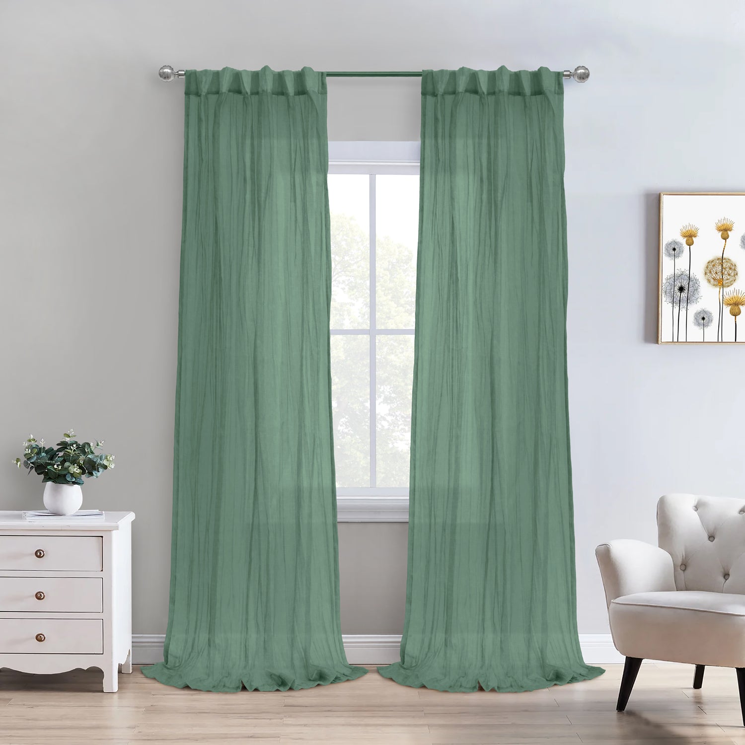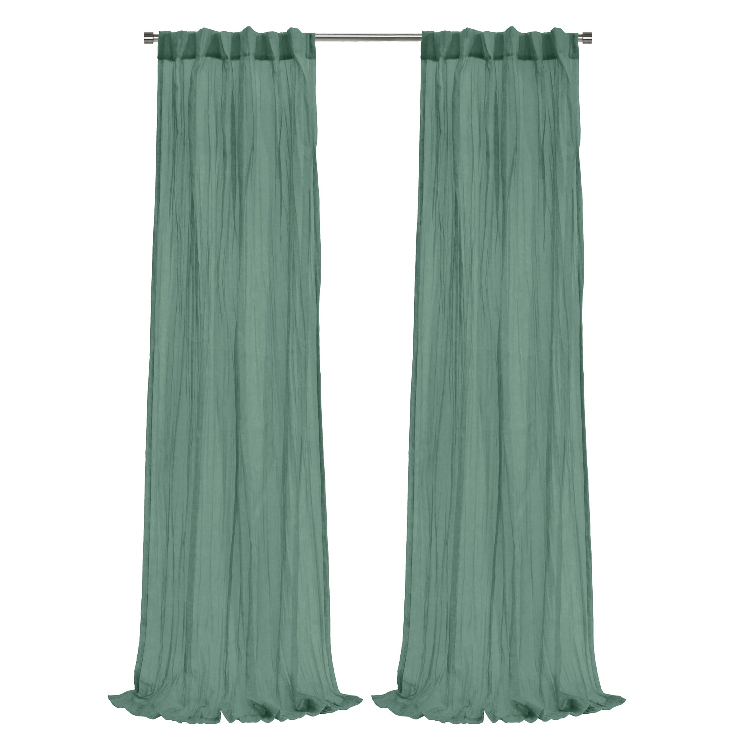 Habitat 100% Polyester Paloma Sheer Broomstick Crushed Solid Dual Header Curtain Panel Sage