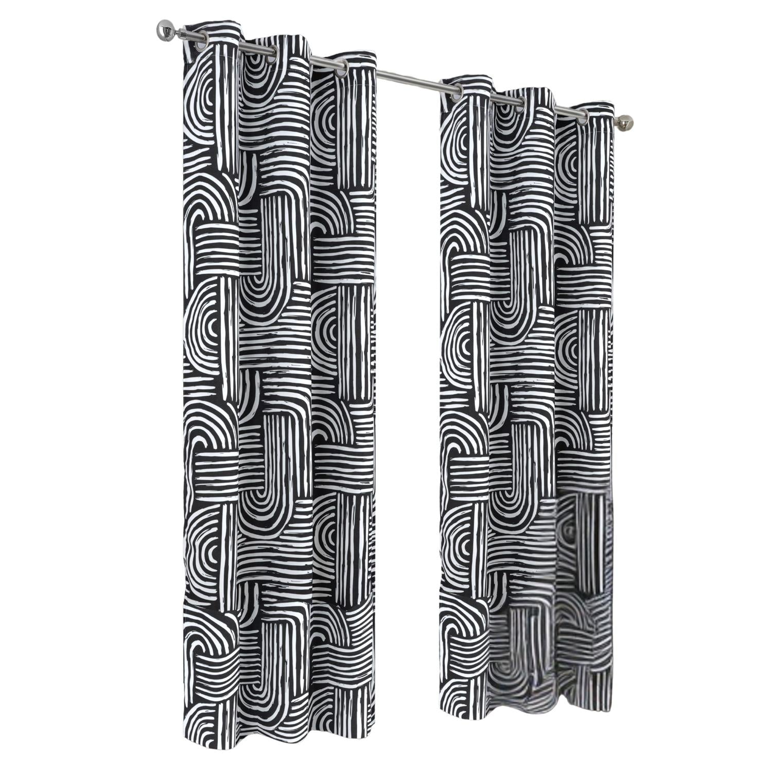 RT Designer Collection Ashton Printed Blackout Luxurious Decorative Grommet Curtain Panel 54" x 84" Black
