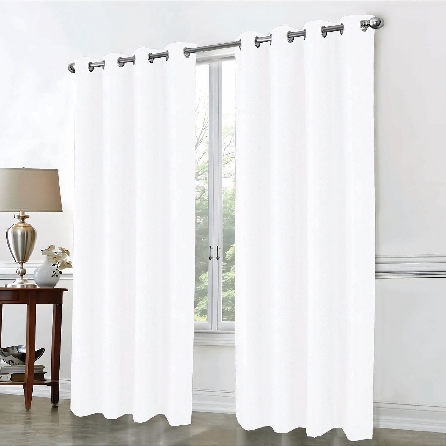 Elevate your space with the Cassi Shimmer Jacquard Grommet Curtain Panel, a perfect blend of modern style and subtle radiance. Designed with an abstract woven pattern, this single curtain panel features delicately integrated shimmer threads that reflect natural light, adding soft glow and depth to your décor. The refined jacquard texture and clean grommet header ensure effortless hanging and graceful draping across any room. With a generous 54" width and extra-long 90" length, this panel provides full, luxurious coverage from ceiling to floor. Its versatile design complements a range of modern and transitional spaces, while the machine-washable fabric offers easy maintenance. Please note: this listing includes one single panel only. Multiple panels may be required for broader windows or layered styling.