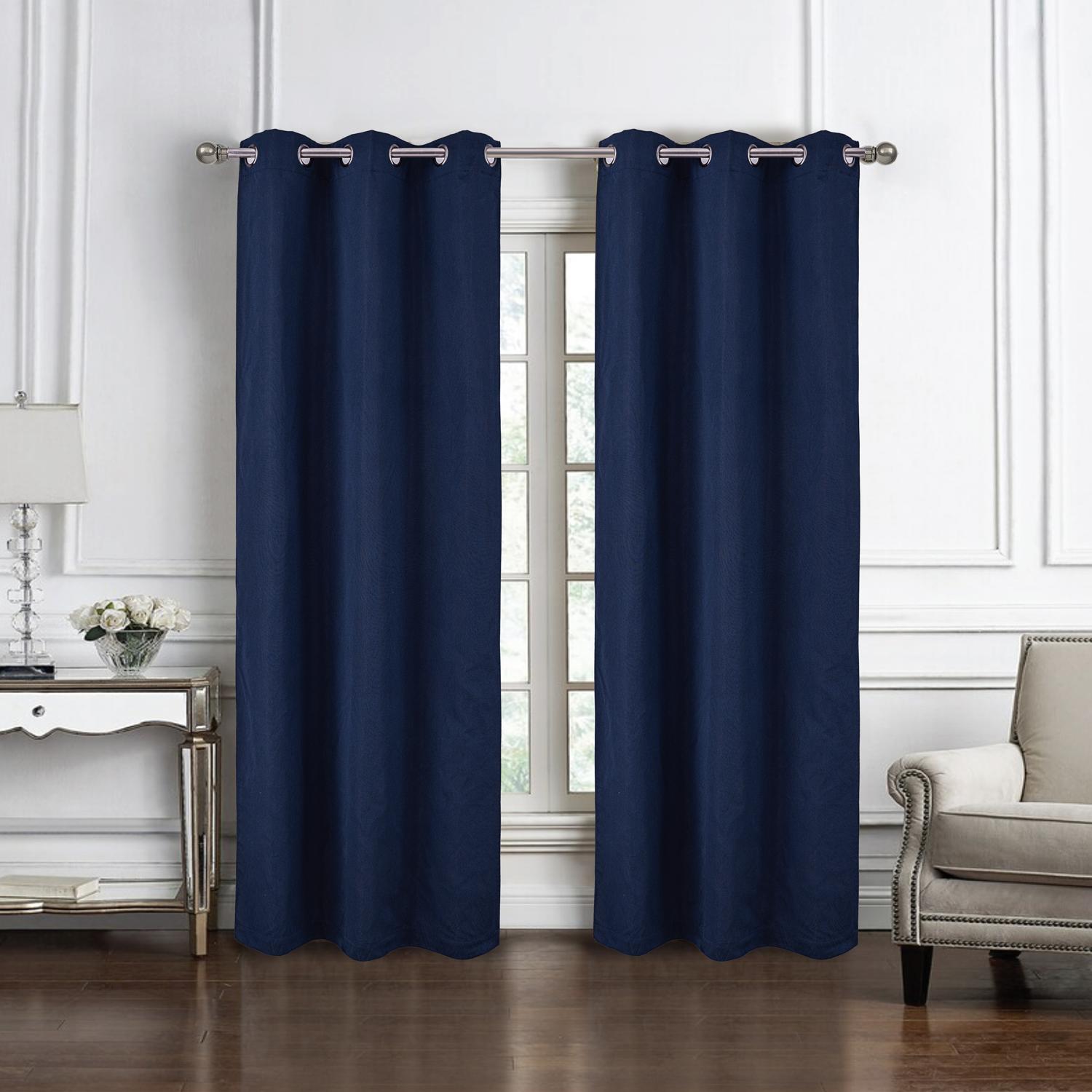 RT Designer Collection Cleo Jacquard Grommet 2 Pack Luxurious Modern Design Curtain Panel 36" x 84" Navy