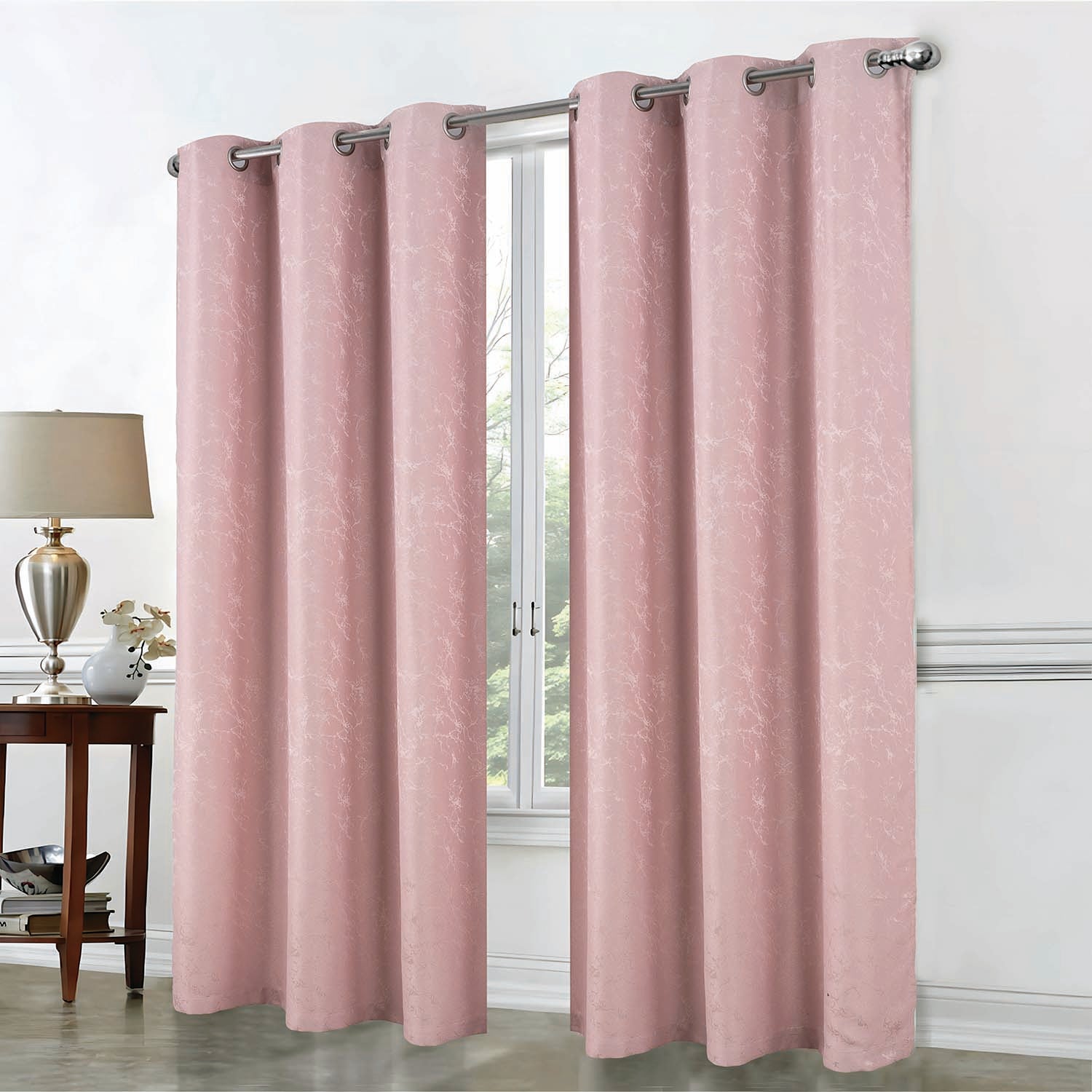 RT Designer Collection Cosmo Shimmer Jacquard 2 Pack Grommet Curtain Panel Pair 36" x 84" Blush