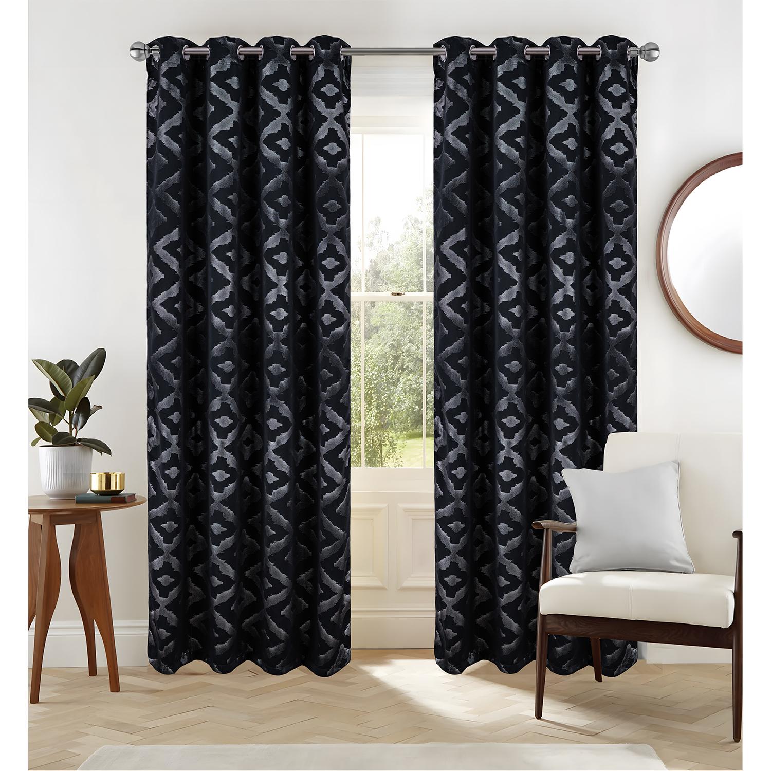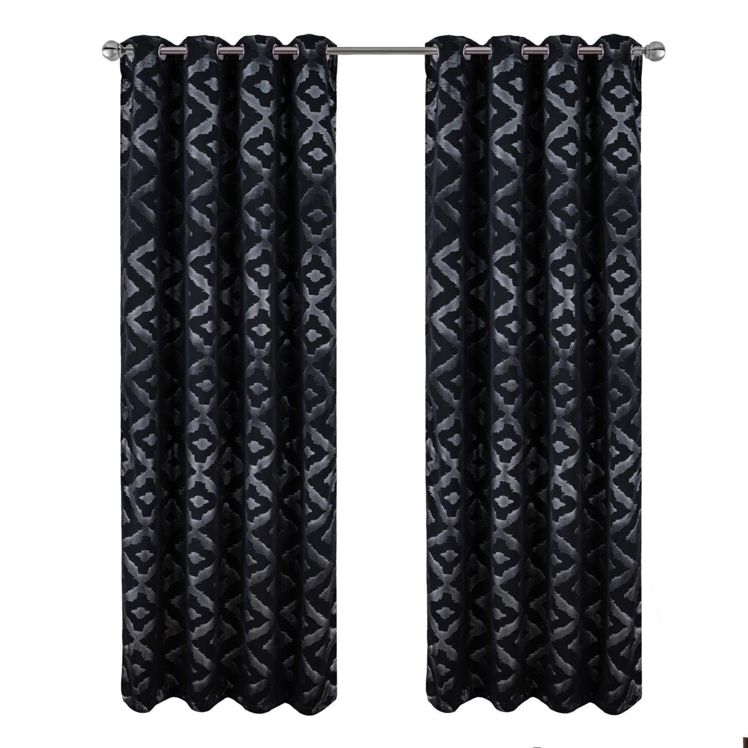 RT Designer Collection Heathrow Halo Foil Blackout Luxurious Decorative Grommet Curtain Panel 54" x 90" Black
