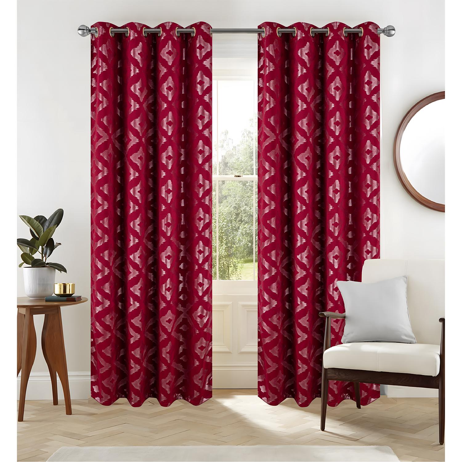 RT Designer Collection Heathrow Halo Foil Blackout Luxurious Decorative Grommet Curtain Panel 54" x 90" Red