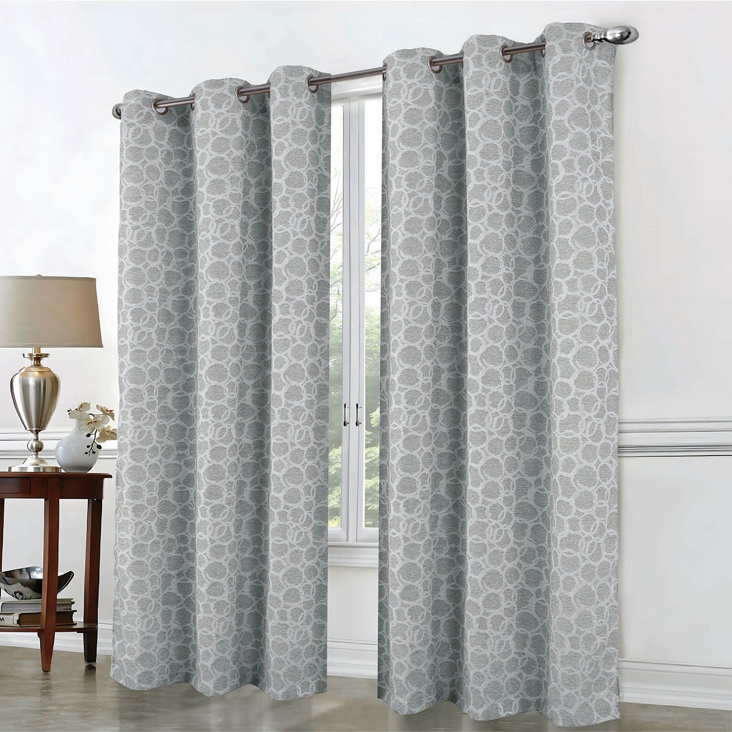 Elevate your interiors with the Jasper Lurex Window Curtain Panel Set from RT Designers Collection—a perfect balance of modern style and understated glamour. This 2-pack set includes two 36" x 84" panels, offering a total width of 72" to provide ideal coverage for most standard windows. The panels feature a contemporary geometric jacquard pattern woven with delicate Lurex threads, adding a subtle shimmer that catches the light without overwhelming the room. Durable metal grommets ensure easy installation and smooth, elegant draping. The versatile design complements both modern and transitional spaces, making it a stylish addition to living rooms, bedrooms, or dining areas. Machine washable for easy upkeep, the Jasper panels combine beauty, texture, and practicality. Add a soft metallic sparkle and structured charm to your décor with this refined window treatment set.GEOMETRIC LUREX DESIGN: Woven pattern with soft metallic threads adds shimmer and depth to any room COMPLETE 2-PANEL SET: Includes two matching panels (36" x 84" each) for full window coverage EASY INSTALLATION: Sturdy metal grommets fit most curtain rods and allow smooth, elegant draping VERSATILE STYLE: Pairs effortlessly with both modern and transitional interiors MACHINE WASHABLE: Durable and easy to care for—just machine wash for lasting beauty and freshness