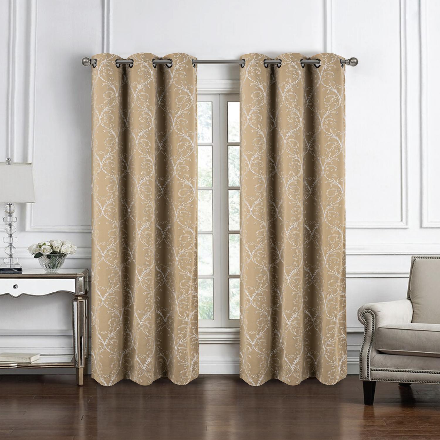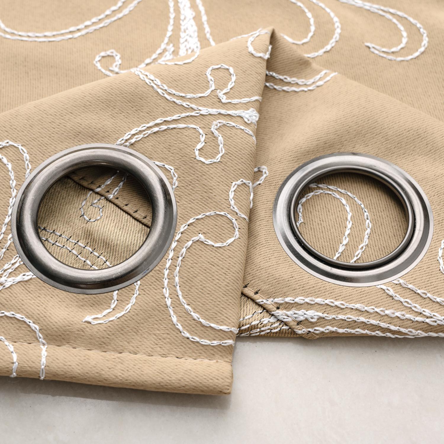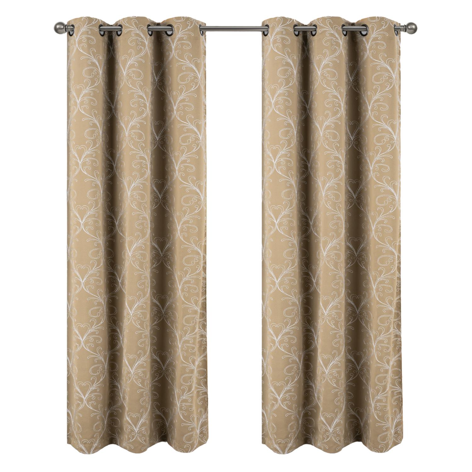 RT Designer Collection Kimber 2 Pack Embroidered Blackout Luxurious Decorative Grommet Curtain Panel 36" x 84" Taupe