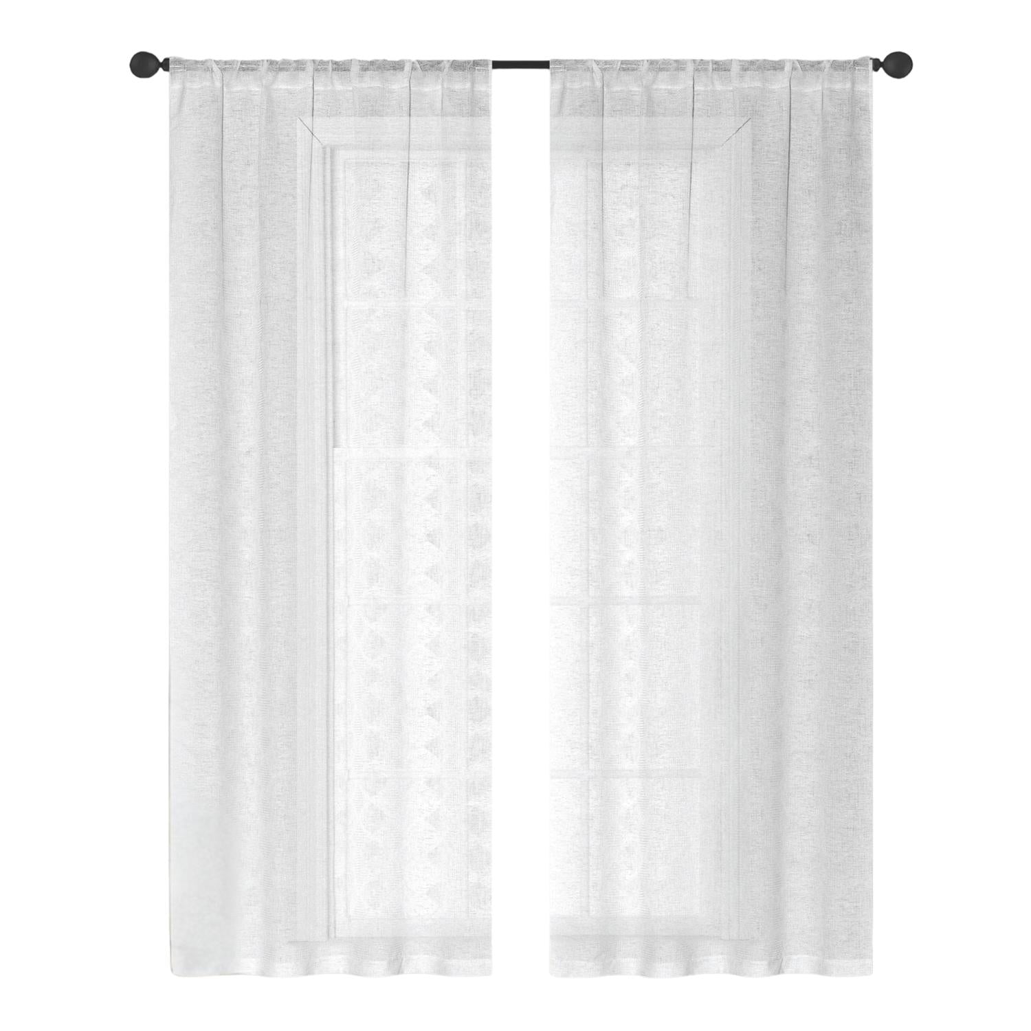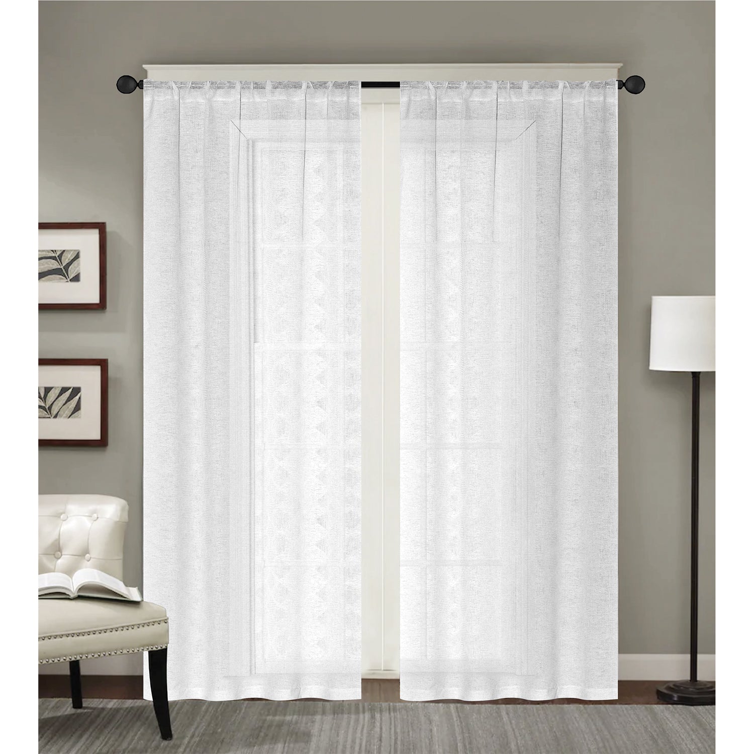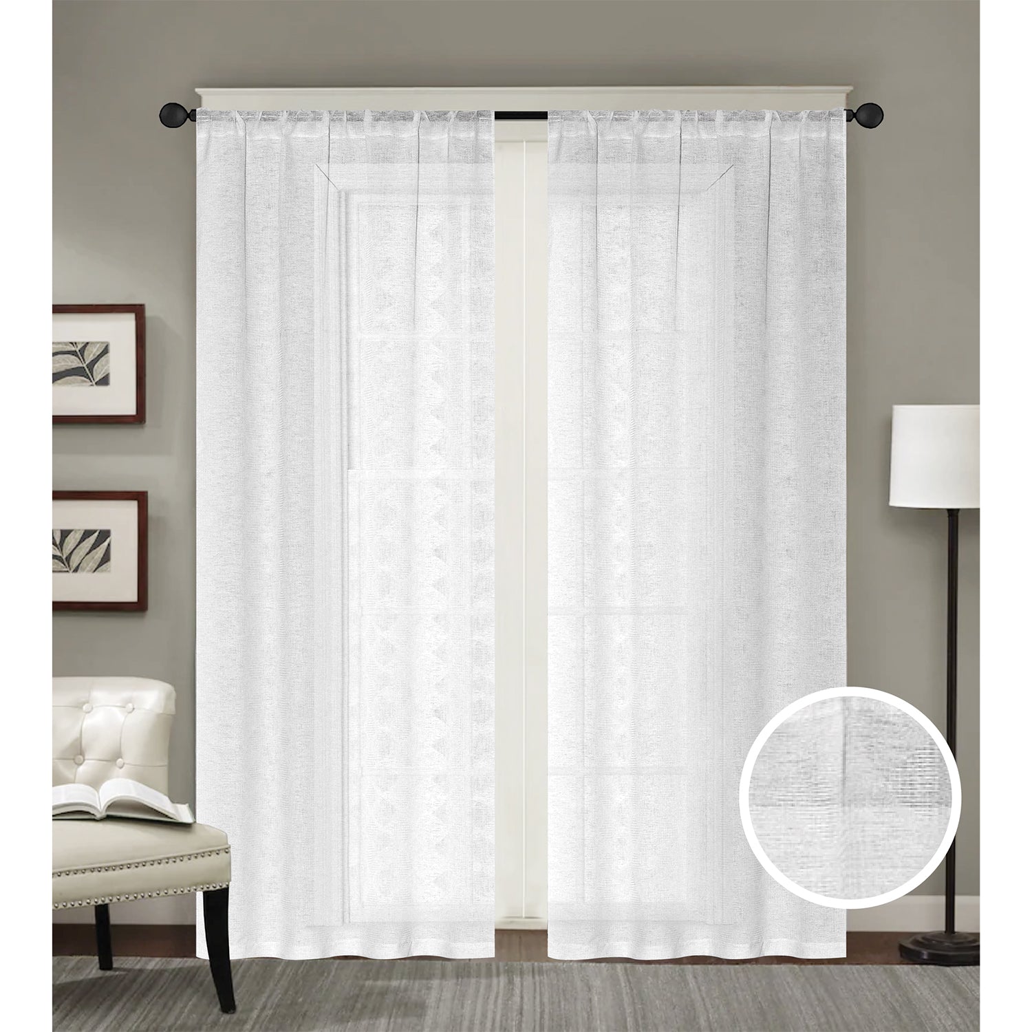 RT Designer Collection Laura Textured Sheer Rod Pocket Luxurious Modern Design Curtain Panel Pair 37" x 84" White