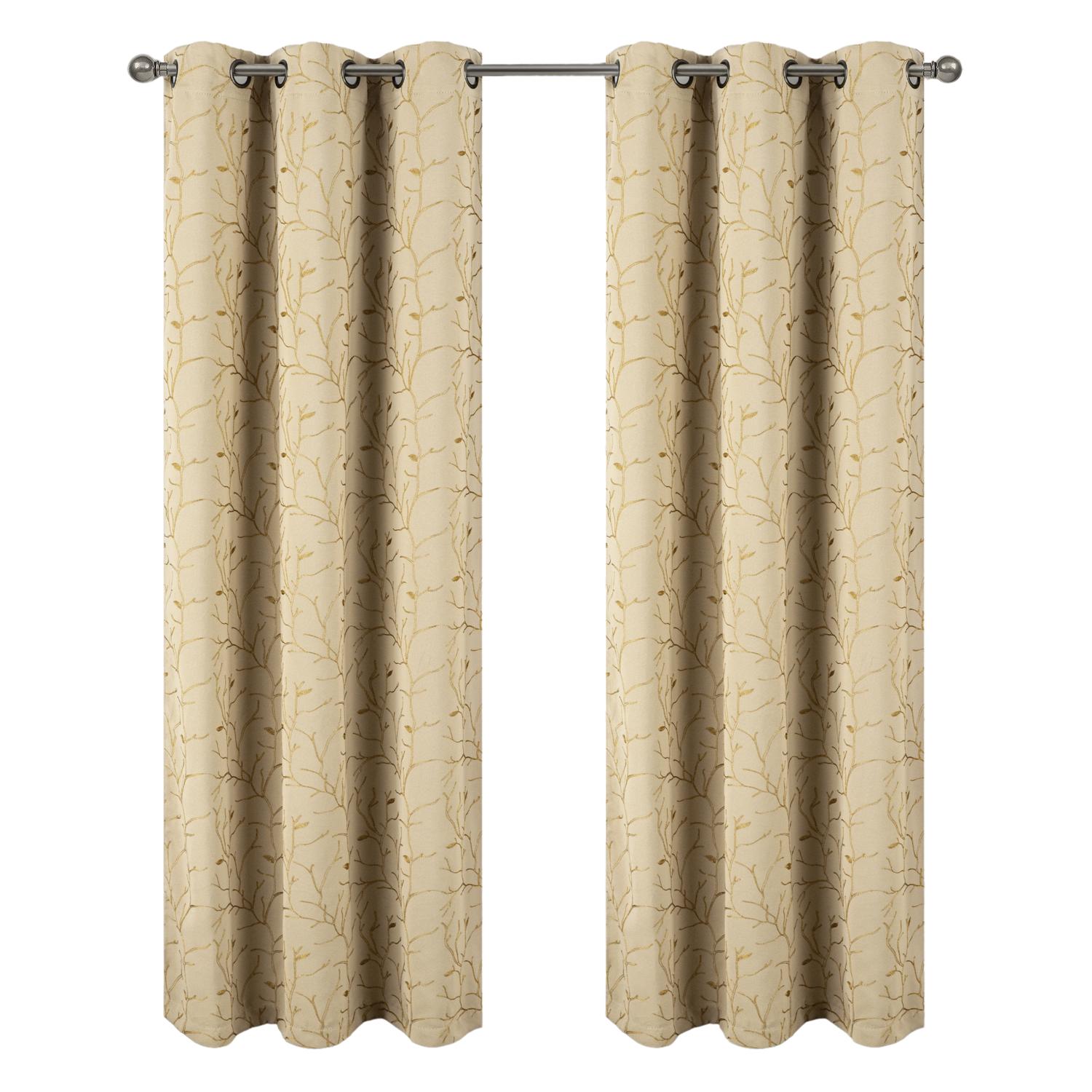 RT Designer Collection Luciana 2 Pack Embroidered Blackout Luxurious Decorative Grommet Curtain Panel 36" x 84" Beige