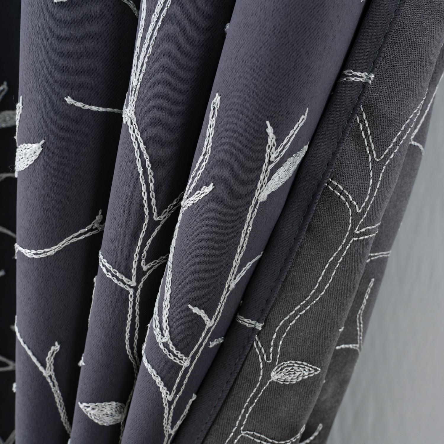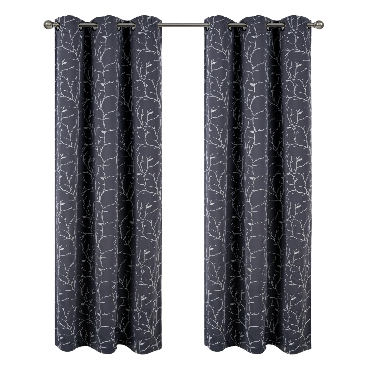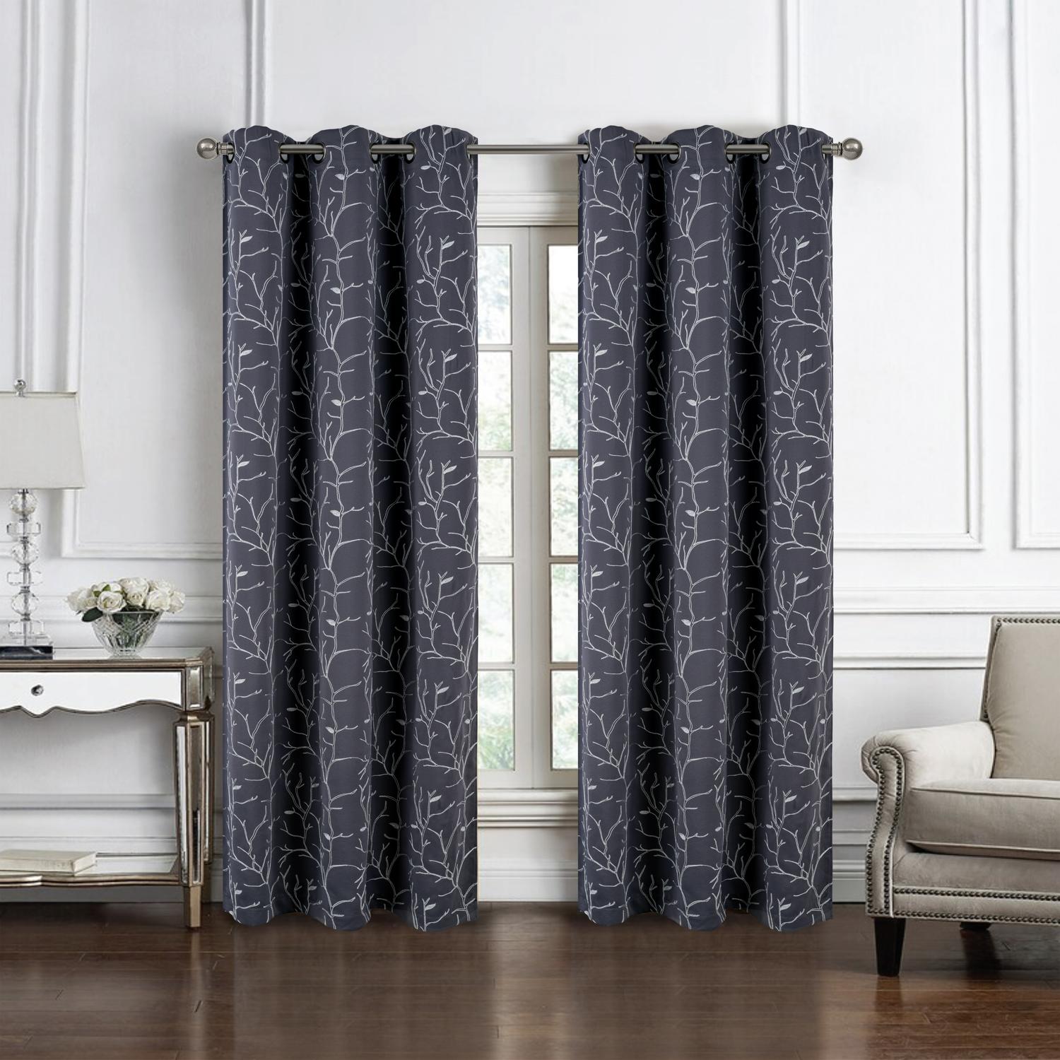 RT Designer Collection Luciana 2 Pack Embroidered Blackout Luxurious Decorative Grommet Curtain Panel 36" x 84" Charcoal