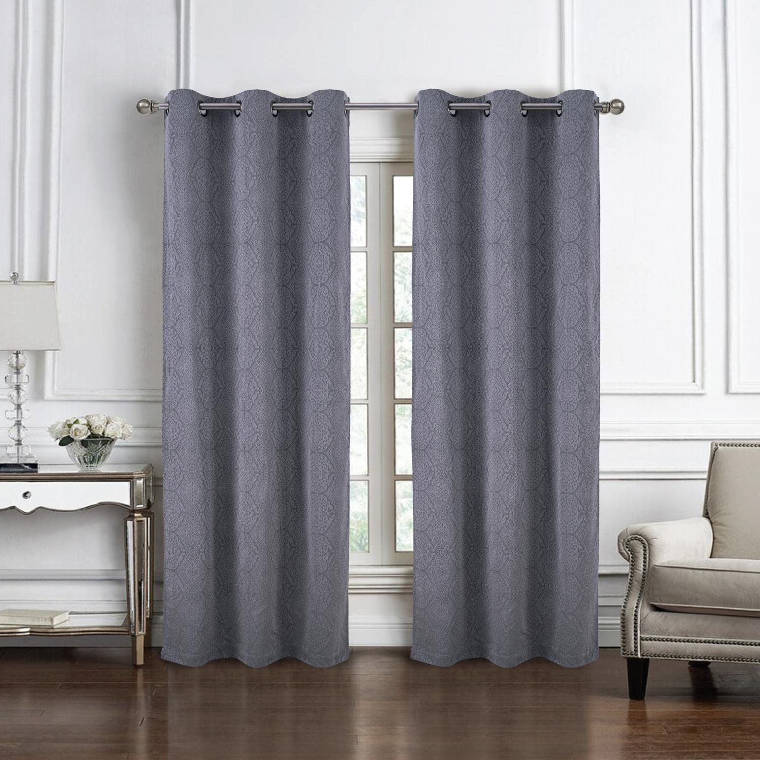 RT Designer Collection Percy Jacquard Luxurious Decorative Grommet 2 Pack Curtain Panel 36" x 84" Grey