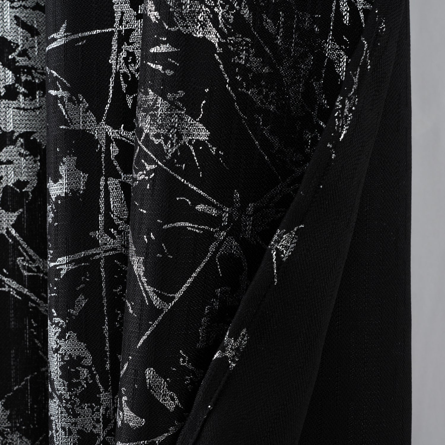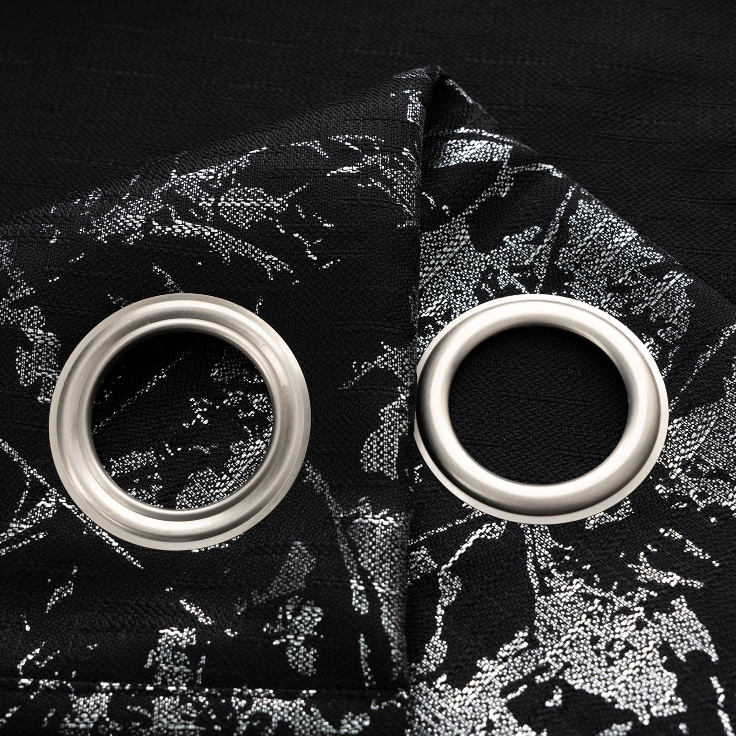 Elevate your home décor with the Brighton Foil Jacquard Grommet Panel in Black, a stunning single curtain designed to bring modern elegance and practicality to your living spaces. Featuring a textured jacquard base enhanced with an abstract floral foil print, this panel captures the light beautifully, creating subtle shimmer and depth in any room. Each panel measures 52 inches wide by 84 inches long, providing generous coverage whether used alone or paired with another for a fuller look. The high-quality polyester fabric offers a balance of durability and softness, making it ideal for everyday use while maintaining a stylish finish. A grommet header ensures smooth gliding on any standard curtain rod, allowing for effortless installation and a clean, tailored appearance. Perfect for bedrooms, living rooms, dining areas, or offices, this panel filters light softly while maintaining privacy, creating an inviting atmosphere.DURABLE MATERIAL: Made from 100% polyester, this jacquard curtain panel features a shimmering foil print that combines strength, style, and a soft texture, offering long-lasting performance and modern appeal. INCLUDING ITEMS: Package includes one panel measuring 52 inches wide by 84 inches long, perfect for small windows or can be paired with another panel for larger coverage, offering style flexibility in any setting. VERSATILE DESIGN: The foil floral jacquard design adds a touch of sophistication and shimmer, blending effortlessly with a range of décors, from contemporary to traditional, and enhancing any room’s atmosphere. REVERSIBLE STYLE: Designed with a clean, finished reverse side, this curtain maintains a polished appearance from both the inside and the outside, ensuring your windows look stylish and coordinated all around. EASY MAINTENANCE: Machine washable polyester fabric makes care simple. The panel maintains its colour, texture, and shimmering foil accents wash after wash, ensuring stress-free upkeep for everyday living.