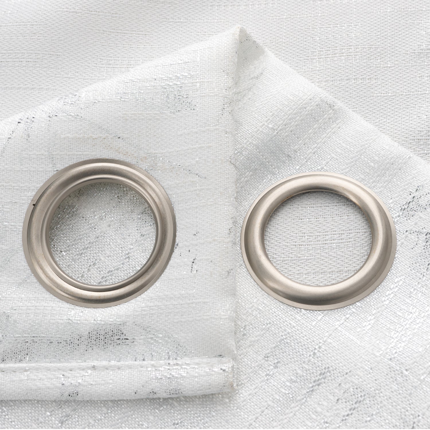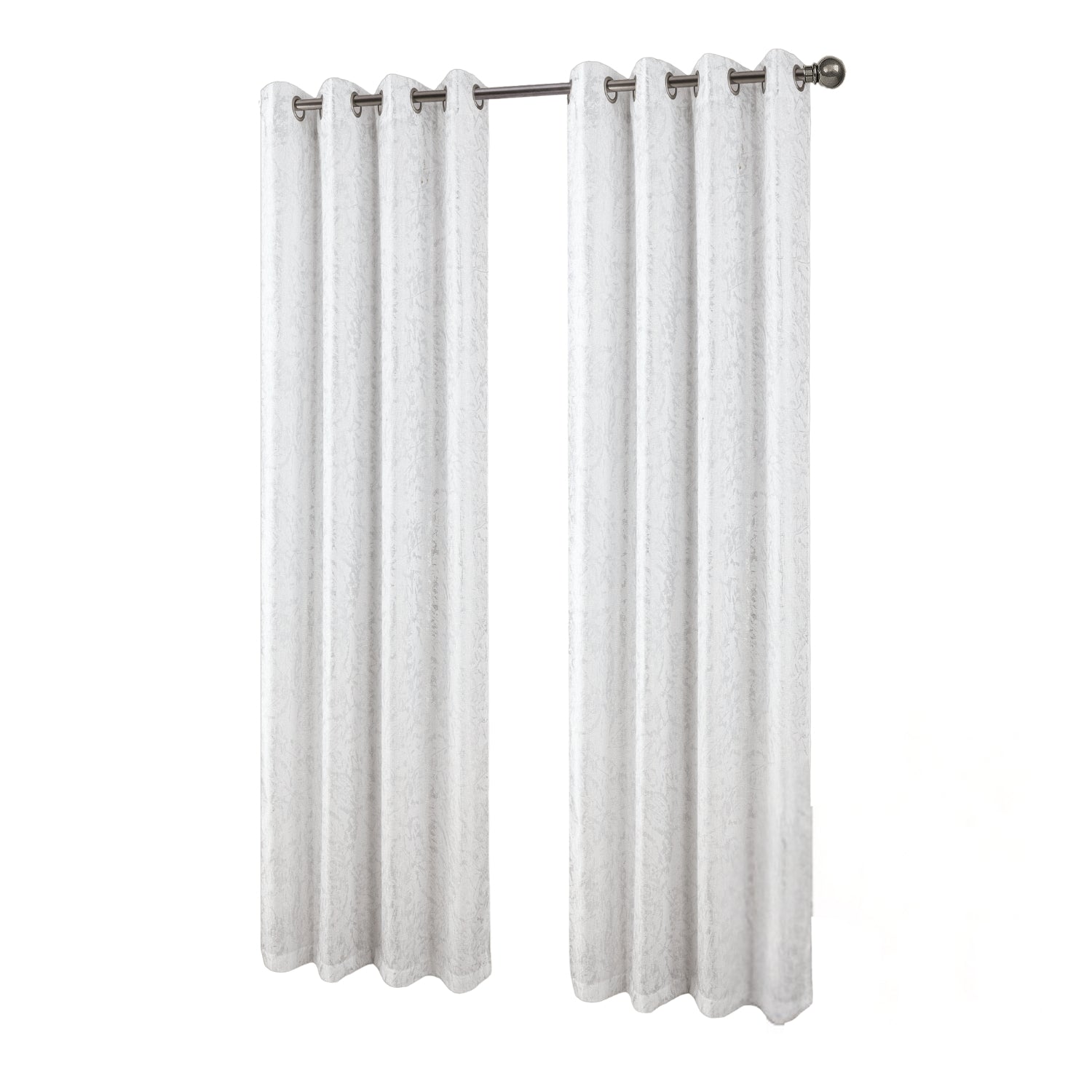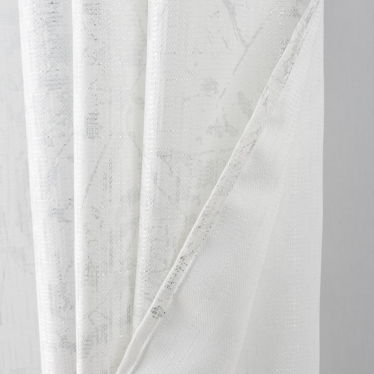 Elevate your home décor with the Brighton Foil Jacquard Grommet Panel in White/Silver, a stunning single curtain designed to bring modern elegance and practicality to your living spaces. Featuring a textured jacquard base enhanced with an abstract floral foil print, this panel captures the light beautifully, creating subtle shimmer and depth in any room. Each panel measures 52 inches wide by 84 inches long, providing generous coverage whether used alone or paired with another for a fuller look. The high-quality polyester fabric offers a balance of durability and softness, making it ideal for everyday use while maintaining a stylish finish. A grommet header ensures smooth gliding on any standard curtain rod, allowing for effortless installation and a clean, tailored appearance. Perfect for bedrooms, living rooms, dining areas, or offices, this panel filters light softly while maintaining privacy, creating an inviting atmosphere.DURABLE MATERIAL: Made from 100% polyester, this jacquard curtain panel features a shimmering foil print that combines strength, style, and a soft texture, offering long-lasting performance and modern appeal. INCLUDING ITEMS: Package includes one panel measuring 52 inches wide by 84 inches long, perfect for small windows or can be paired with another panel for larger coverage, offering style flexibility in any setting. VERSATILE DESIGN: The foil floral jacquard design adds a touch of sophistication and shimmer, blending effortlessly with a range of décors, from contemporary to traditional, and enhancing any room’s atmosphere. REVERSIBLE STYLE: Designed with a clean, finished reverse side, this curtain maintains a polished appearance from both the inside and the outside, ensuring your windows look stylish and coordinated all around. EASY MAINTENANCE: Machine washable polyester fabric makes care simple. The panel maintains its colour, texture, and shimmering foil accents wash after wash, ensuring stress-free upkeep for everyday living.