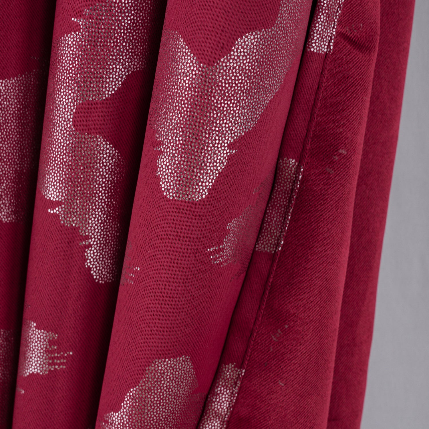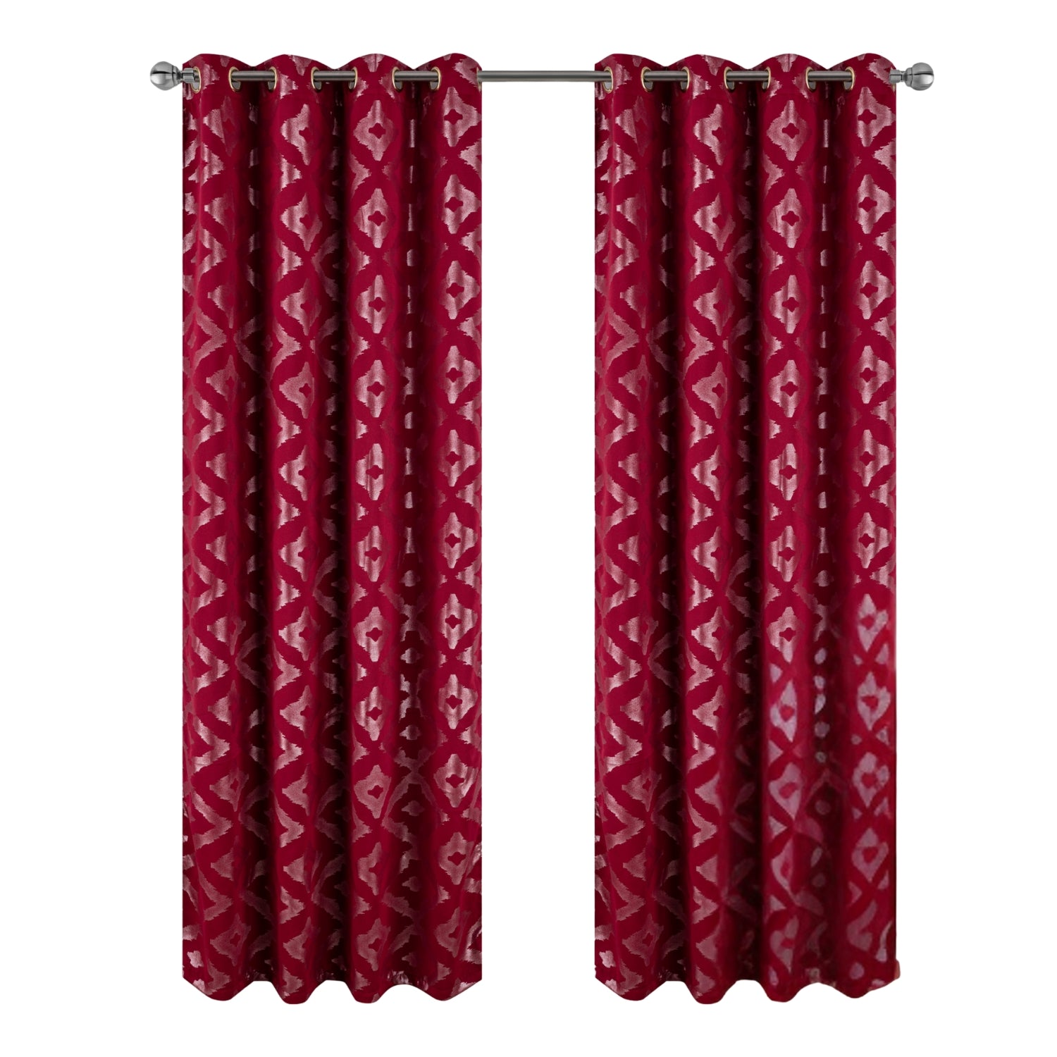 Add sleek glamour to your space with the Heathrow Halo Foil Blackout Grommet Panel. Featuring a modern diamond foil print, this curtain creates a sparkling statement while providing functional light control. The blackout design helps block sunlight, reduce glare, and enhance privacy, making it ideal for bedrooms, living rooms, or offices. Measuring 52" x 84", it is perfectly sized for most standard windows, offering both decorative flair and practicality. The grommet top allows for quick hanging and smooth sliding on most curtain rods, giving your windows an elegant, polished look. Crafted from 100% polyester, this panel is wrinkle-resistant, durable, and machine washable for easy care. Available in Red, Silver, the Heathrow Halo Curtain suits both modern and transitional spaces, delivering a contemporary sparkle that complements your décor.