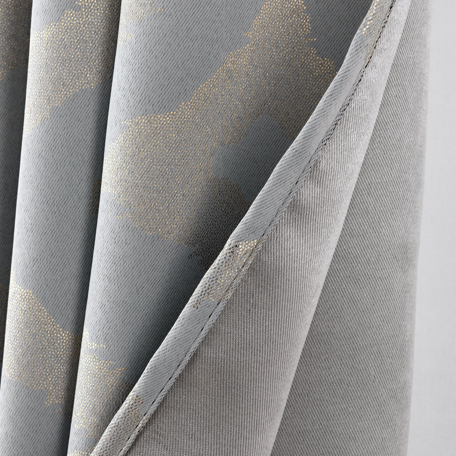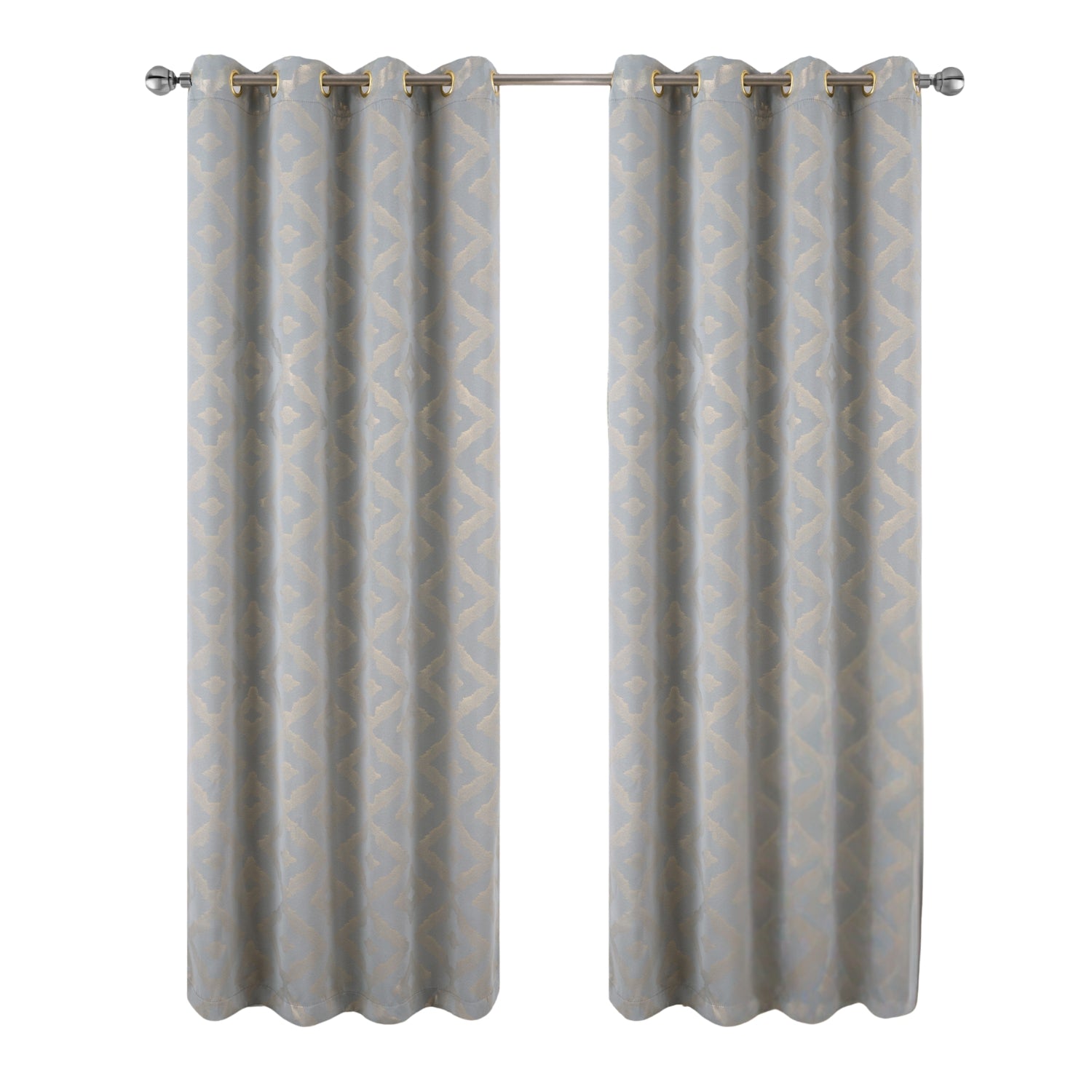 Add sleek glamour to your space with the Heathrow Halo Foil Blackout Grommet Panel. Featuring a modern diamond foil print, this curtain creates a sparkling statement while providing functional light control. The blackout design helps block sunlight, reduce glare, and enhance privacy, making it ideal for bedrooms, living rooms, or offices. Measuring 52" x 84", it is perfectly sized for most standard windows, offering both decorative flair and practicality. The grommet top allows for quick hanging and smooth sliding on most curtain rods, giving your windows an elegant, polished look. Crafted from 100% polyester, this panel is wrinkle-resistant, durable, and machine washable for easy care. Available in Silver, the Heathrow Halo Curtain suits both modern and transitional spaces, delivering a contemporary sparkle that complements your décor.DURABLE MATERIAL: Made from 100% polyester, this panel offers reliable strength, wrinkle resistance, and everyday durability. Designed for lasting use, the fabric retains its sheen and quality wash after wash. ELEGANT LIGHT FILTER: Featuring a shimmering diamond foil design, the curtain enhances interiors with subtle sparkle. The blackout function reduces glare and light, creating a comfortable and private atmosphere. SIMPLE INSTALLATION: The grommet top design ensures effortless hanging and smooth sliding on standard curtain rods. Achieve a refined, contemporary look in minutes with this easy-to-install window panel. VERSATILE DESIGN: Perfect for bedrooms, living rooms, dining areas, or offices, this curtain combines blackout benefits with chic style. Its metallic diamond shimmer adds a glamorous touch to any décor style. EASY MAINTENANCE: Machine washable for convenient care, this panel resists fading and wrinkling. The low-maintenance polyester fabric ensures you enjoy both style and function without extra effort.