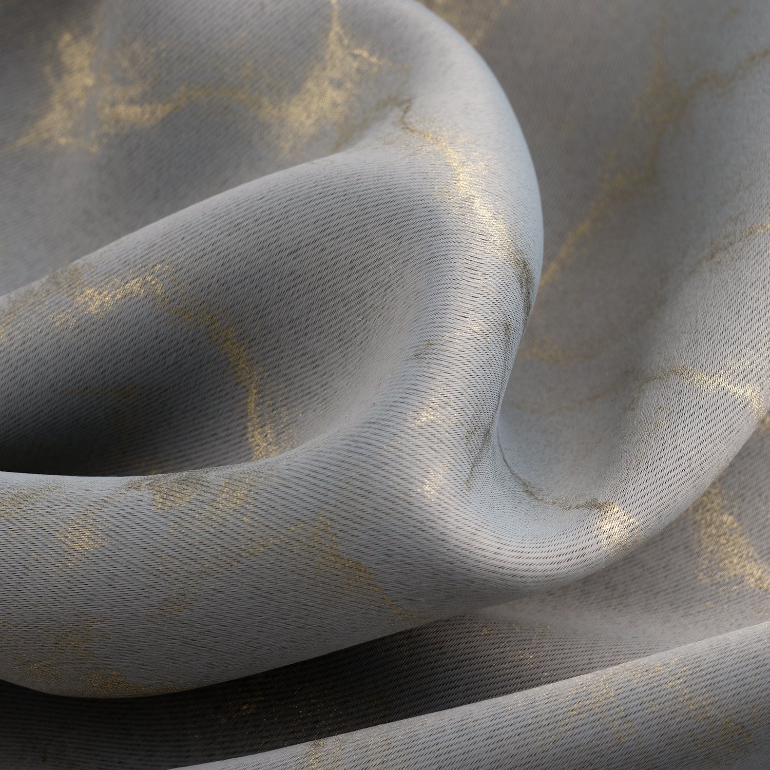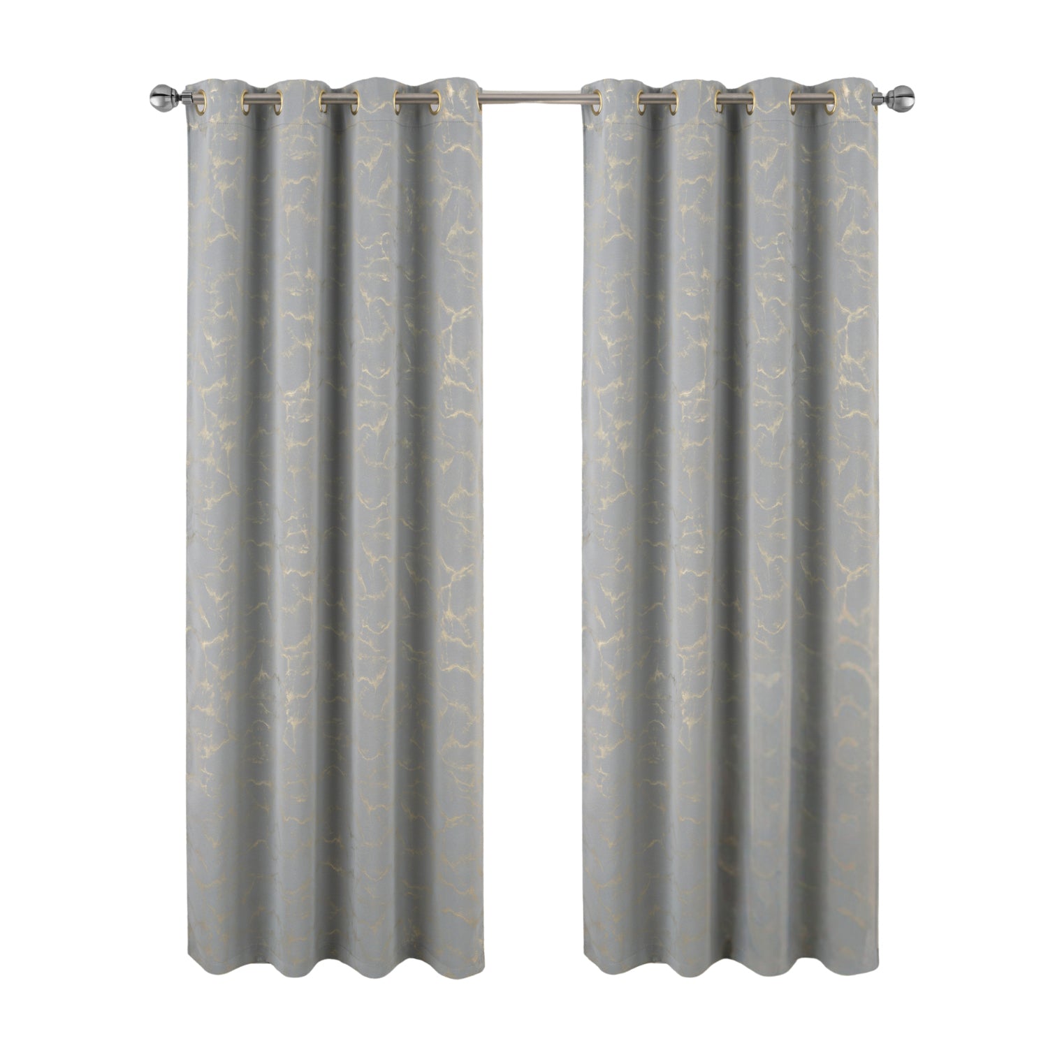 Bring refined glamour to your home with the Heidi Halo Foil Blackout Grommet Panel, designed with a chic marble-inspired foil pattern that introduces a touch of luxury to any space. Perfect for contemporary interiors, this curtain blends stylish design with practical functionality, offering blackout benefits that block unwanted light and improve privacy. Measuring 52" x 84", the panel fits most windows with ease, while the grommet top ensures smooth sliding and hassle-free installation. The metallic marble effect adds dimension and modern flair without overwhelming your décor, making it versatile for bedrooms, living rooms, or offices. Crafted from 100% polyester, it is wrinkle-resistant, durable, and machine washable, making it both beautiful and easy to maintain. Available in Silver, the Heidi Halo Foil Curtain pairs effortlessly with modern and transitional home styles, delivering understated elegance with a luminous finish.DURABLE MATERIAL: Made with 100% polyester, this curtain ensures durability, wrinkle resistance, and long-lasting elegance. The strong fabric retains its shape and sheen even after repeated washing and daily use. ELEGANT LIGHT FILTER: Featuring a foil marble design, this curtain reduces sunlight and glare while adding contemporary charm. Its blackout function enhances privacy, comfort, and relaxation in any living space. SIMPLE INSTALLATION: The grommet top design makes hanging easy and ensures smooth sliding across most standard curtain rods. Install quickly to achieve a modern, refined look for your windows in minutes. VERSATILE DESIGN: With its chic marble-inspired foil print, this curtain complements modern, transitional, and luxe décor styles. Ideal for living rooms, bedrooms, or offices, it blends subtle glam with function. EASY MAINTENANCE: Designed for convenience, this panel is machine washable and resists fading, keeping its shimmer and sophistication intact. Low-maintenance fabric makes it perfect for everyday home use.