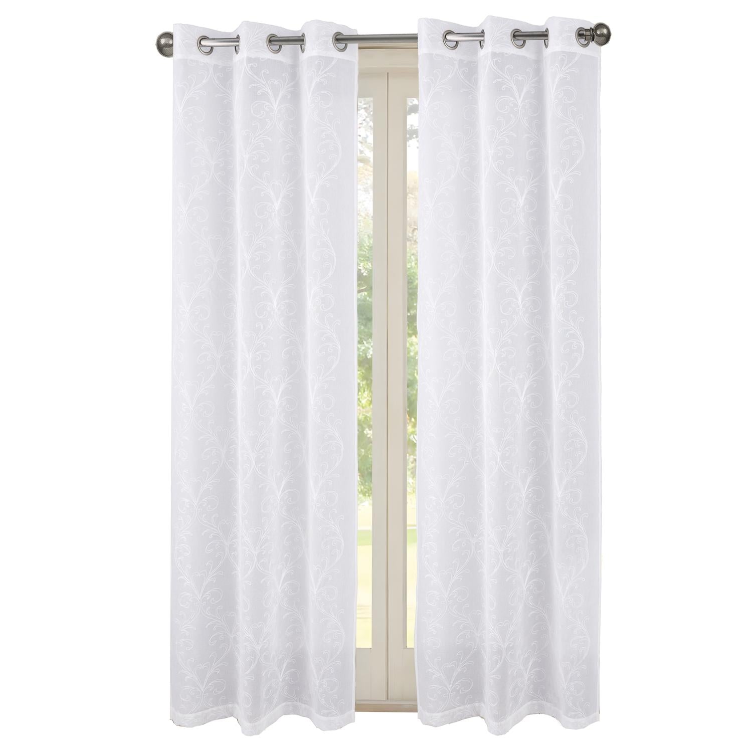 RT Designers Collection Kimberly Embroidery Doily Grommet Sheer Curtain Panel Pair White