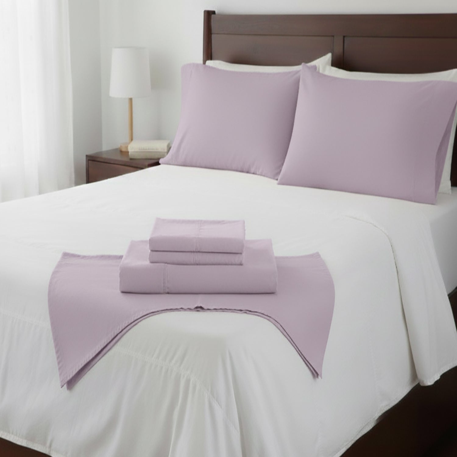Experience the ultimate in comfort and sophistication with the Castle Hill 330 Thread Count Cotton Sateen Sheet Set by HN International. Available in Lavander color King and Queen sizes. This luxurious bedding is woven from 100% premium cotton sateen for a silky-soft touch and subtle sheen. The 330 thread count ensures lasting durability and an indulgent sleeping experience night after night. Designed with deep pockets to accommodate mattresses up to 18 inches, this King-size set includes one fitted sheet, one generously oversized flat sheet, and two pillowcases with envelope closures for a secure fit. The warm Lavander tone adds a refined elegance to any bedroom décor, offering both comfort and style. Machine washable for effortless care, this sheet set provides the perfect balance of durability, smoothness, and timeless appeal for everyday luxury.DURABLE MATERIAL: Crafted from 100% cotton sateen, this premium sheet set offers exceptional softness, durability, and breathability. The 330 thread count ensures a smooth, lustrous surface that resists pilling while maintaining strength and luxury. INCLUDING ITEMS: Each set includes for King size one Flat sheet (78"x80"); one Fitted sheet (110"x108"); Two Pillowcases (20"x40") .And for Queen size one Flat sheet (60"x80"); one Fitted sheet (92"x108"); two pillowcases (20"x30"). VERSATILE DESIGN: Presented in a timeless Lavander color, this sheet set effortlessly complements any bedding ensemble or décor style. The soft neutral shade brings warmth and balance to your space, adding refined sophistication. REVERSIBLE STYLE: The sateen fabric offers a lustrous finish on one side and a soft matte texture on the other. Both sides deliver the same luxurious touch, offering flexibility and lasting comfort in every season. EASY MAINTENANCE: Machine washable for everyday convenience, these sheets retain their softness, color, and sheen after repeated laundering.