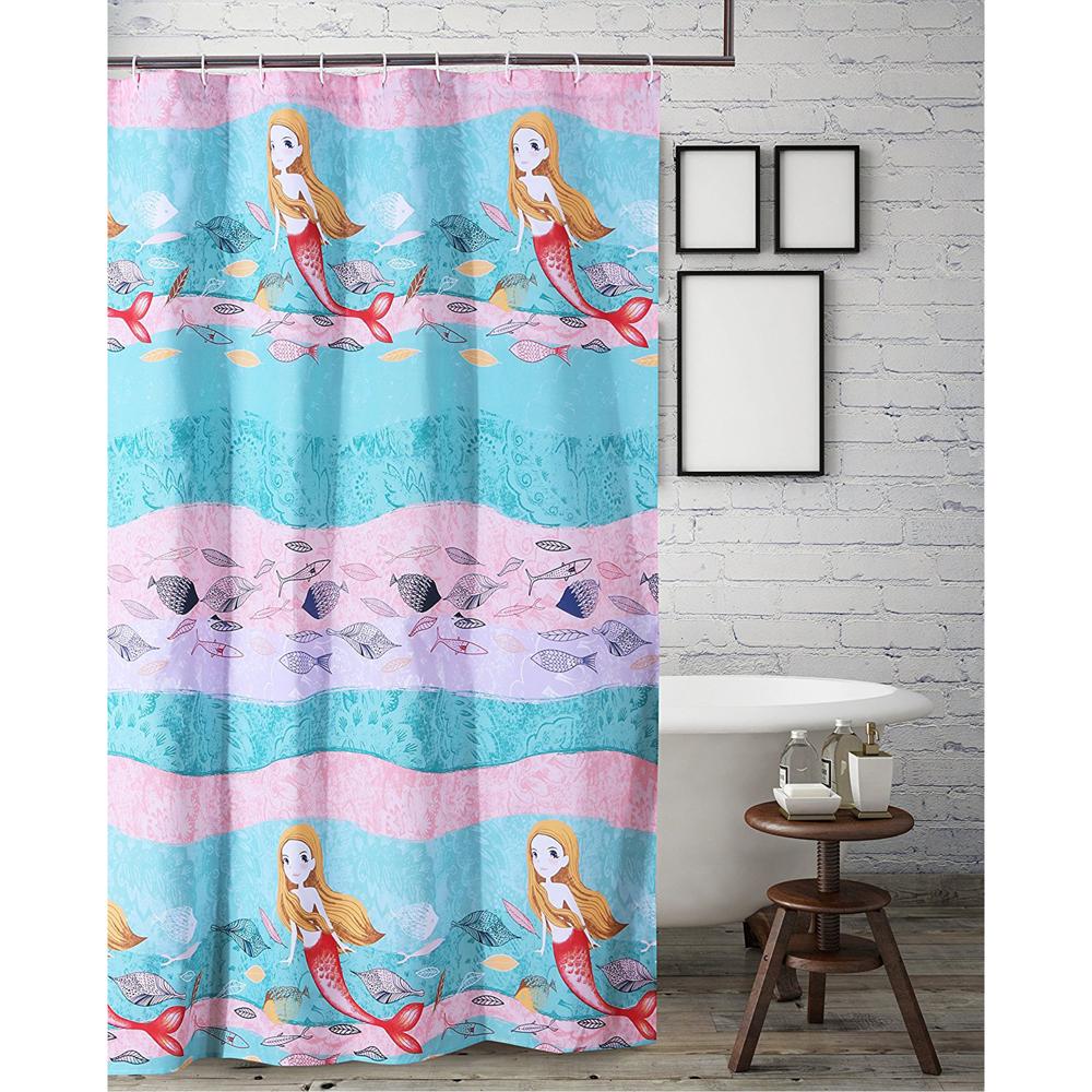 Greenland Home Fashion Mermaid bath shower curtain make your bathroom more gorgeous. Happy and free swimming in an undersea fantasy young mermaids frolic together with friendly fish. Awash in waves of aquamarine pink and blue the Mermaid quilt set adds bright color and character to any room. Reinforced button holes for durability. Create a underwater adventure with the Mermaid shower curtain. Square Mermaid shower curtain size 72-inches wide x 72-inches length. Multicolor Made from 100% Polyester. Reinforced button holes for durability. Create a underwater adventure with the Mermaid shower curtain. Care instruction: Easy care Machine washable.