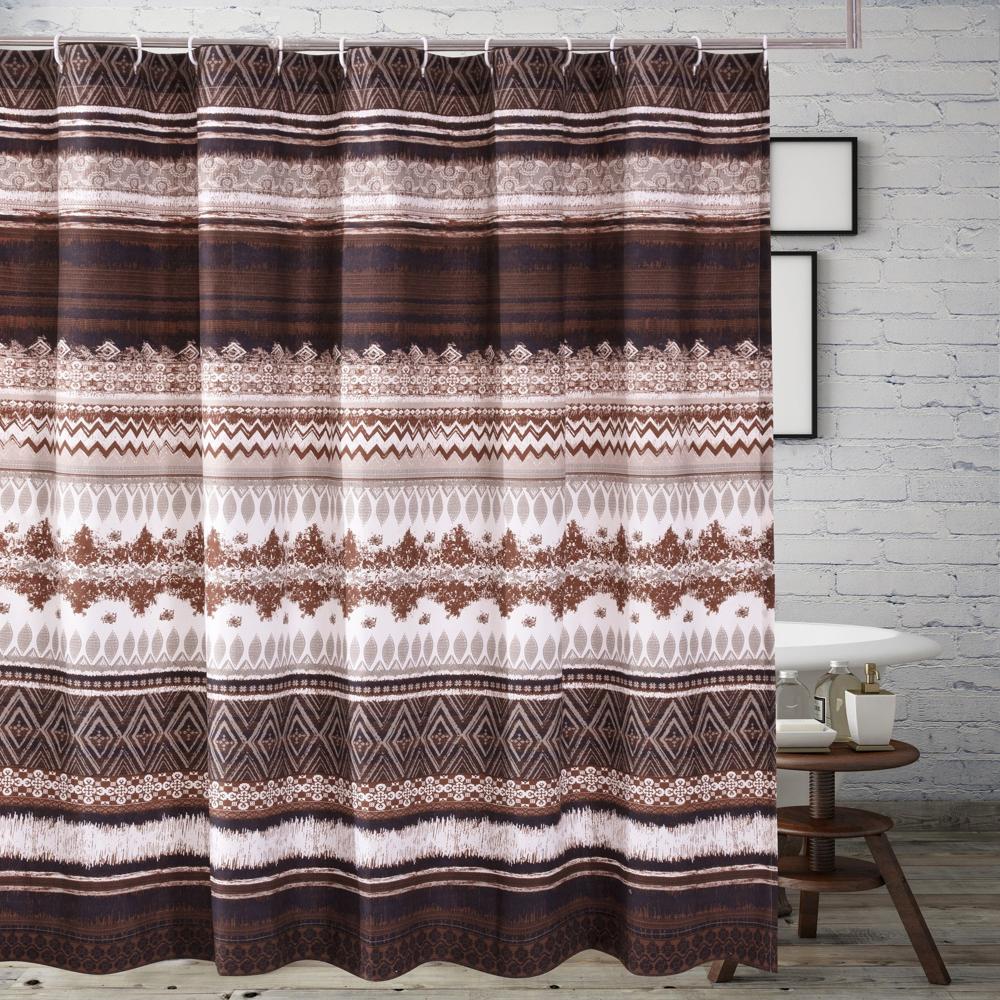 Bring the spirit and style of the Great Southwest to your home with the Southwest shower curtain. Enchant your space with a tribal vibe. Deep, saturated coffee bean brown and rustic brown tones contrast with snowdrift white and taupe in native American motifs. Machine washable. . Available size - 72x72". Color: Latte.Barefoot Bungalow Southwest Bath Shower Curtain - 72x72", Latte Reinforced button holes for durability Designed for use with a waterproof liner (not included). Machine washable 100% Polyester