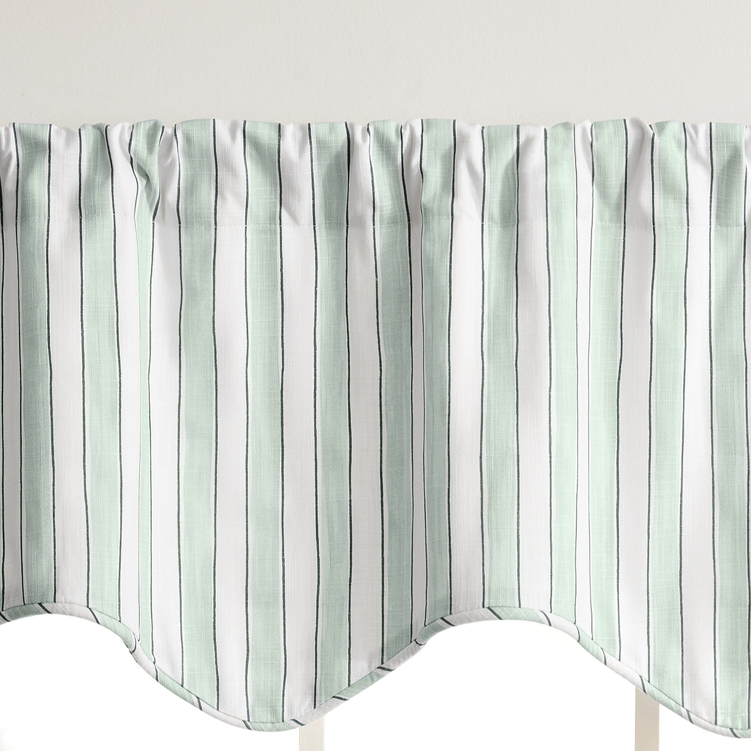 Ellis Curtain Saratoga Stripe 100% Cotton Scallop Poly-Cotton Lined Rod Pocket Valance 50" x 16" Green