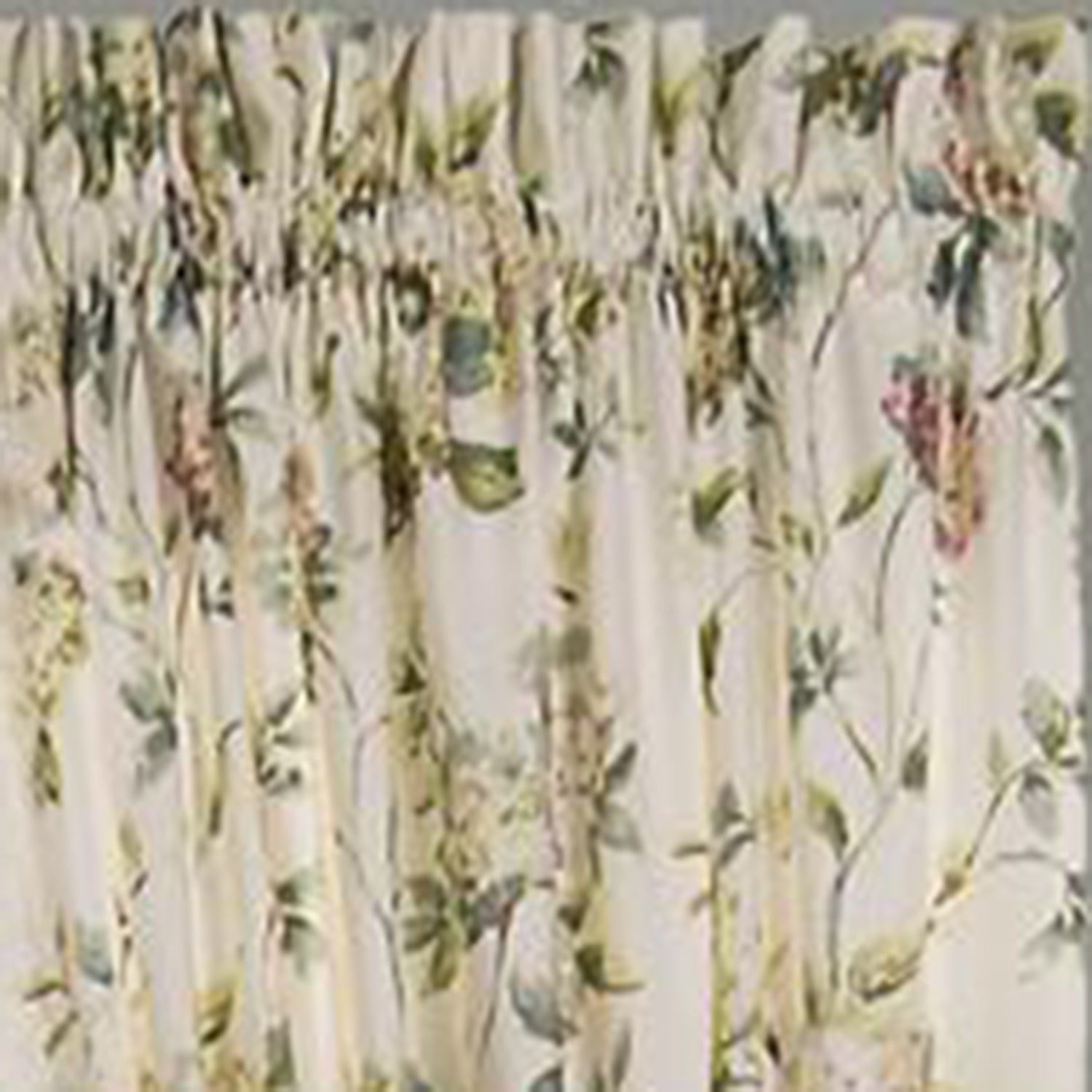 Ellis Curtain Abigail 2-piece window rod pocket pairs with ties is a multi colored traditional Hydrangea floral print pattern on solid natural colored ground that features a range of shades and colors that coordinate easily with a variety of solids and patterns within your home. This traditional curtain panel set is lined with solid color fabric for increase privacy sun protection and also maintain room darkening. Each curtain panel is constructed with a 1.5-inch rod pocket decorative 2.5-inch header and 3-inch bottom hem. Width is measured overall 90-inches. Length is measured overall 63-inches from top stitch to bottom of panel and includes two standard tiebacks. Dimension: 90" x 63". Made from 52% Polyester/48% Cotton Duck that creates a smooth and soft draping effect. Available color is Multicolor. Care instruction: Easy care - Machine Wash - Dry.2-piece high quality window rod pocket panel pair with 2 ties including 90x63". Multicolor. Made from 52% Polyester/48% Cotton Duck that creates a smooth and soft draping effect. Instantly update your home decor with header and decorative window rod pocket pairs including 2 Tie. High quality polyester fabric pattern design for overall room darkening, privacy and sun protection. Care instruction: Easy care - Machine Wash - Dry.