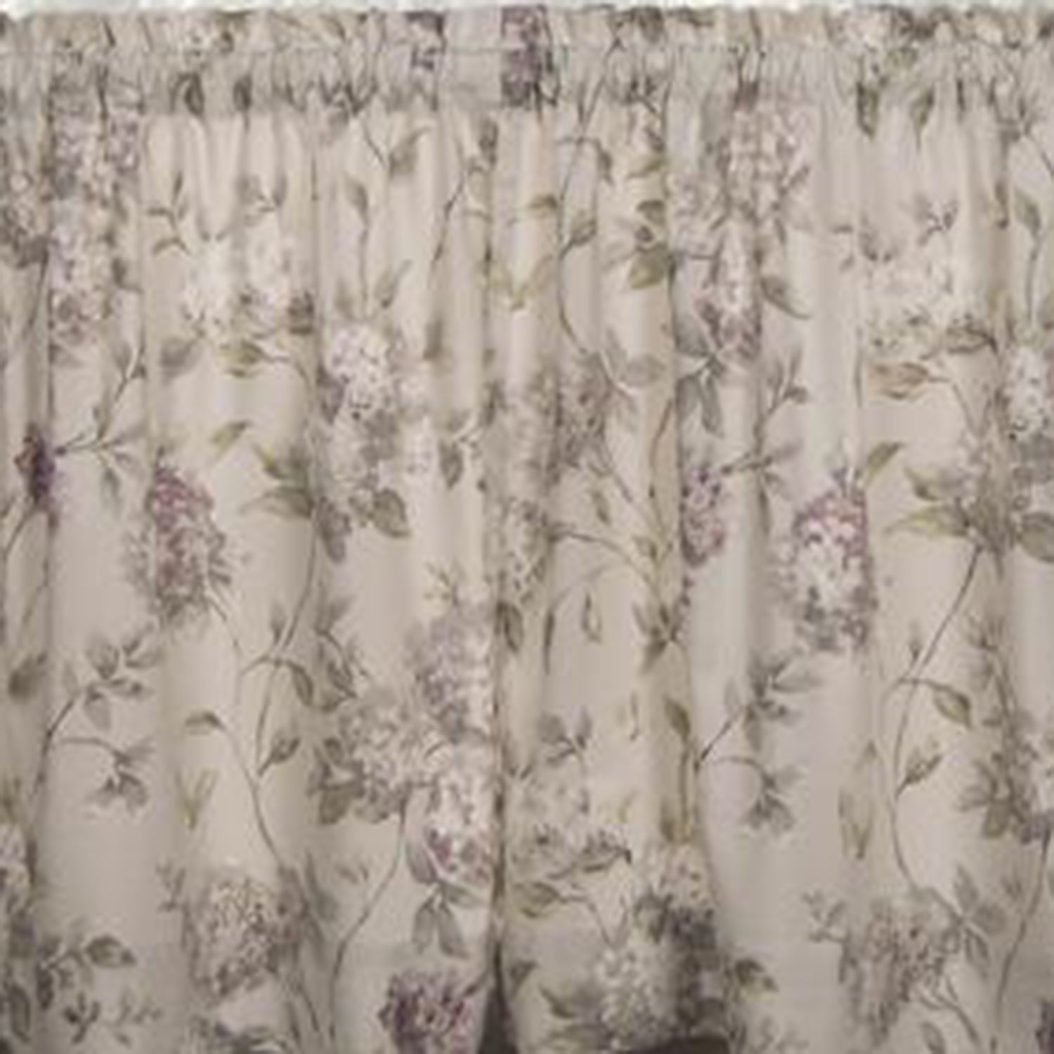 Ellis Curtain Abigail 2-Piece rod pocket pair set includes 2 tier curtains thats creates a smooth soft texture and easy maintenance. These rod pocket pairs can make your room more gorgeous. Abigail modern pocket pair set with 2 tier curtains is lined with solid color fabric for increase privacy and sun protection. Also reduce outside noise and enjoy a quiet and peaceful environment. Bring a breath of fresh air into the entire room. Understated hues give an updated style to this scrolling foliage design. Intricately patterned in subtle hues lends to the appearance of a fine tapestry. Made from 52% polyester and 48% cotton that creates a smooth draping effect. Pieces Included: 2 Tier curtains. This Rod Pocket Pair Tiers available in size 24 inches long x 56 inches wide. Dimension: 56" x 24". Available color is Lilac. Care instruction: Easy care - Machine Wash - Dry.COMPLETE 2-PIECE SET: Includes two tier curtains measuring 56" wide x 24" long, perfect for adding charm and coverage to your windows. PREMIUM FABRIC BLEND: Made from 52% polyester and 48% cotton for a smooth draping effect, soft texture, and easy maintenance. LINED FOR PRIVACY: Features a solid color lining that enhances privacy, blocks sunlight, and helps reduce outside noise for a peaceful environment. ELEGANT DESIGN: Showcases a scrolling foliage pattern in understated lilac tones, giving your room a refined and tapestry-like appearance. EASY CARE: Machine washable and dryer-friendly for convenient upkeep and long-lasting beauty.