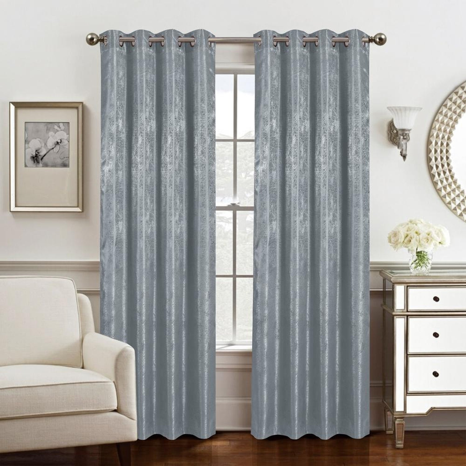 Block out sunlight and harmful UV rays with our two tone jacquard panel. The blackout curtain helps keep the room exceptionally dark-perfect for afternoon naps or morning sleep-ins. In addition to the sophisticated style and promoting better sleeping conditions, the curtain ensures complete privacy and helps reduce outside noise for a quieter indoor environment. Available Size: 54x84" and 54x90". Color: Charcoal.Roxy Two Tone Jacquard Grommet Single Panel - 54x84" and 54x90". Color: Charcoal Curtain features 8 silver metal grommets with a 1.5 inch grommet diameter Our blackout curtains darken any room while keeping the cool in and the heat out Machine washable - see care label 100% Polyester