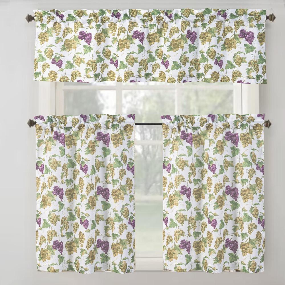RT Designer's Collection Tribeca Grapes Printed Slub 3 Pieces Kitchen Curtain Includes 1 Valance 52" x 18" and 2 Tiers 26" x 36" Each Multi Color