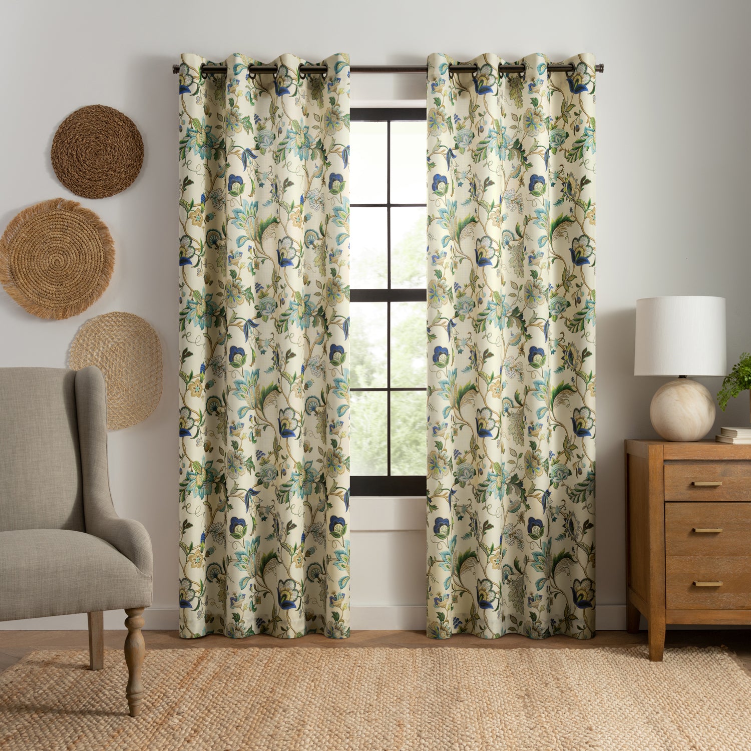 Ellis Curtain 100% Polyester Brissac Colrful Jacobean Pattern Grommet Curtain Panel Lined Blue