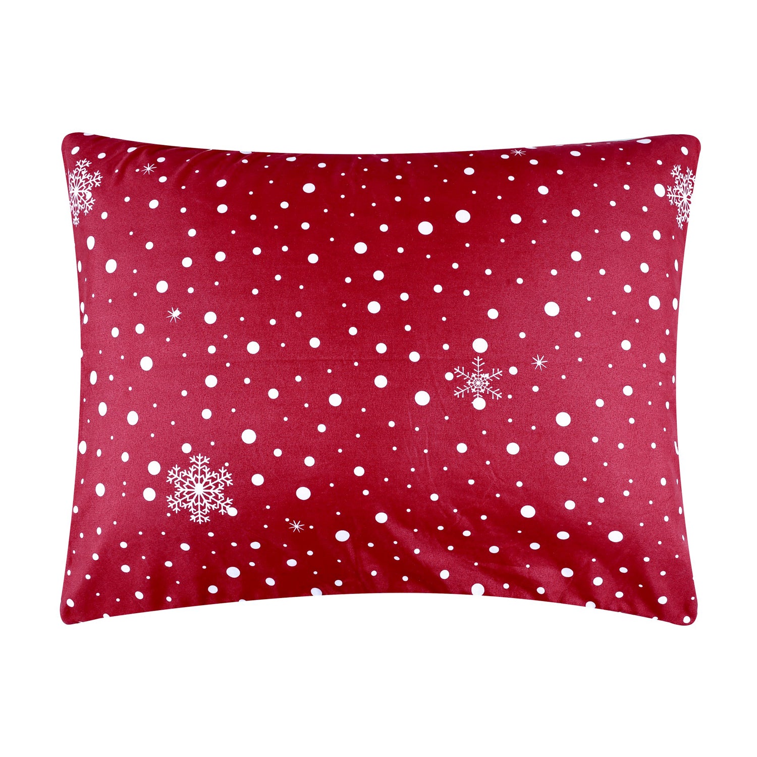 The Greenland Home Fashions Deck the Halls collection brings the magic of Christmas into your home with a cheerful design and versatile style. Available in Standard size (20x26 inches) and King size (20x36 inches), each sham is beautifully crafted with a cotton face, microfiber back, and polyester fill for a blend of softness and durability. The front highlights stylized Christmas trees and presents in red, green, and gold patchwork accented by golden snowflakes on a snowy white ground. For an instant change, the reverse side reveals a vibrant red backdrop with cascading snowflakes, giving you two festive looks in one. Prewashed and preshrunk, the sham provides a soft texture and a reliable fit from the very first use. Whether displayed in a guest room or master suite, the Deck the Halls Red Sham creates a cozy holiday retreat filled with warmth, style, and seasonal joy.DURABLE MATERIAL: Designed with a cotton face, microfiber back, and polyester fill, this sham combines softness with durability, ensuring long-lasting comfort while enhancing your seasonal bedding collection with festive style. INCLUDING ITEMS: Each package contains one quilted pillow sham in your choice of size—Standard (20x26 inches) or King (20x36 inches)—making it a versatile decorative accent for layering with quilts or coverlets. VERSATILE DESIGN: Featuring a patchwork pattern of stylized Christmas trees and presents in rich red, green, and gold with golden snowflakes, this sham blends traditional holiday charm with timeless appeal for any room décor. REVERSIBLE STYLE: Enjoy two festive looks in one piece with the reversible design, offering a holiday patchwork front and a red snowflake reverse, allowing you to refresh your bedding style with ease throughout the season. EASY MAINTENANCE: Prewashed and preshrunk for softness and a perfect fit, this sham is conveniently machine washable, making it simple to maintain while keeping its beauty and comfort intact through many holiday seasons.