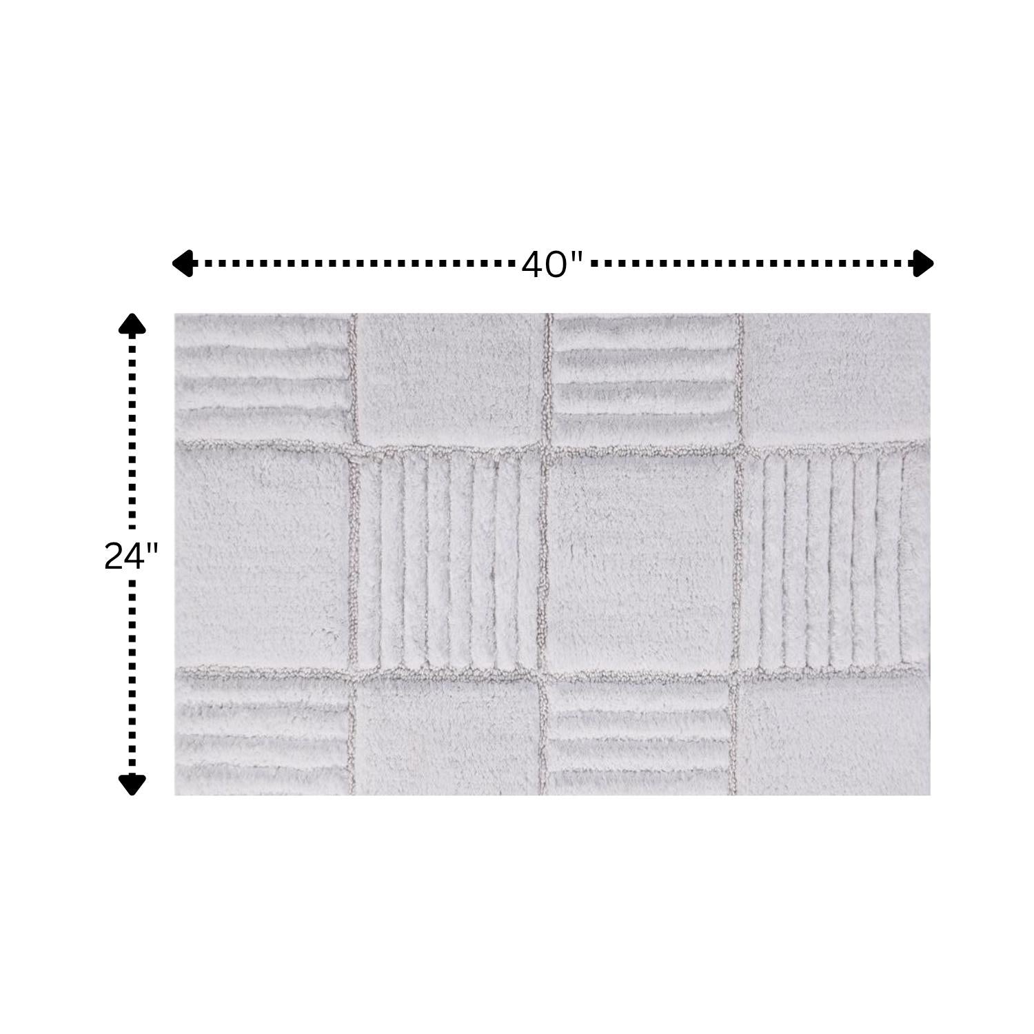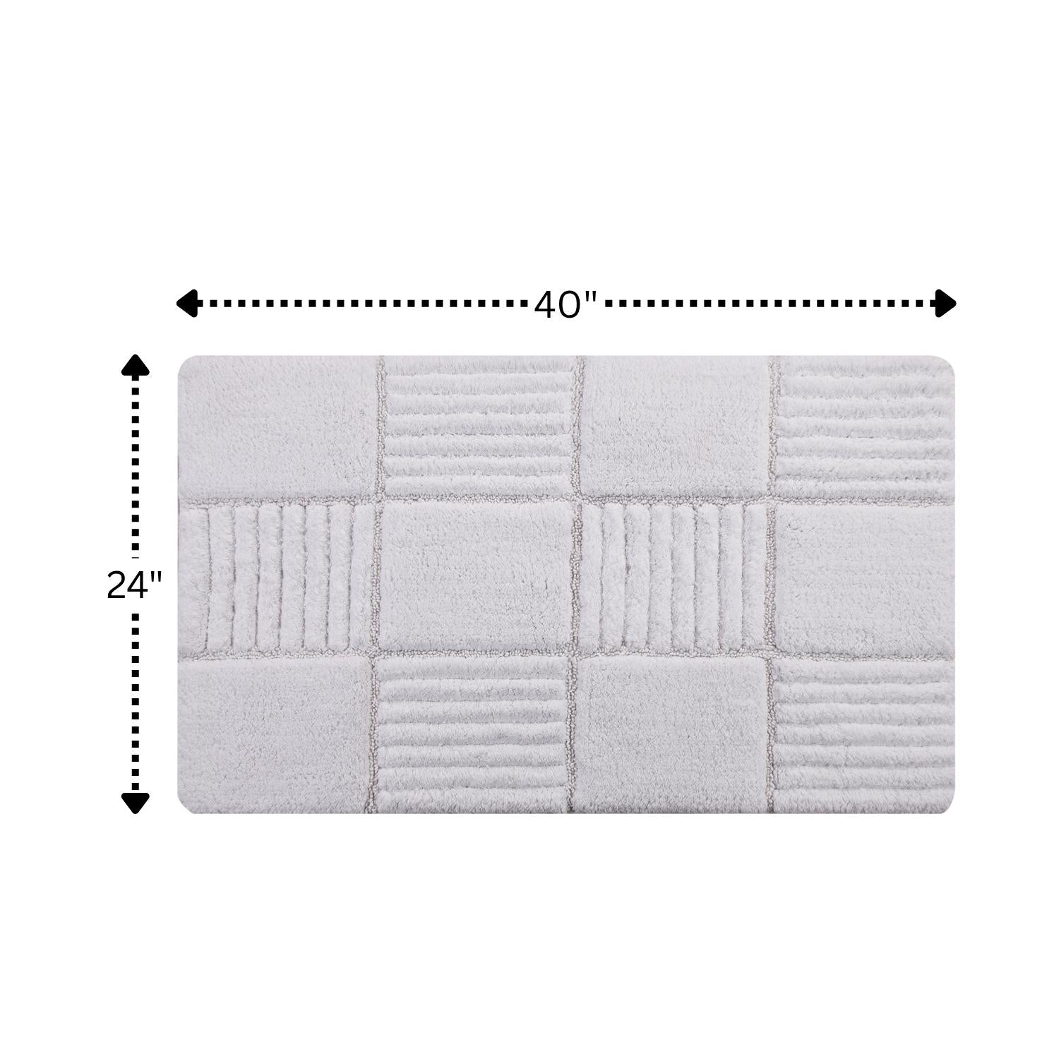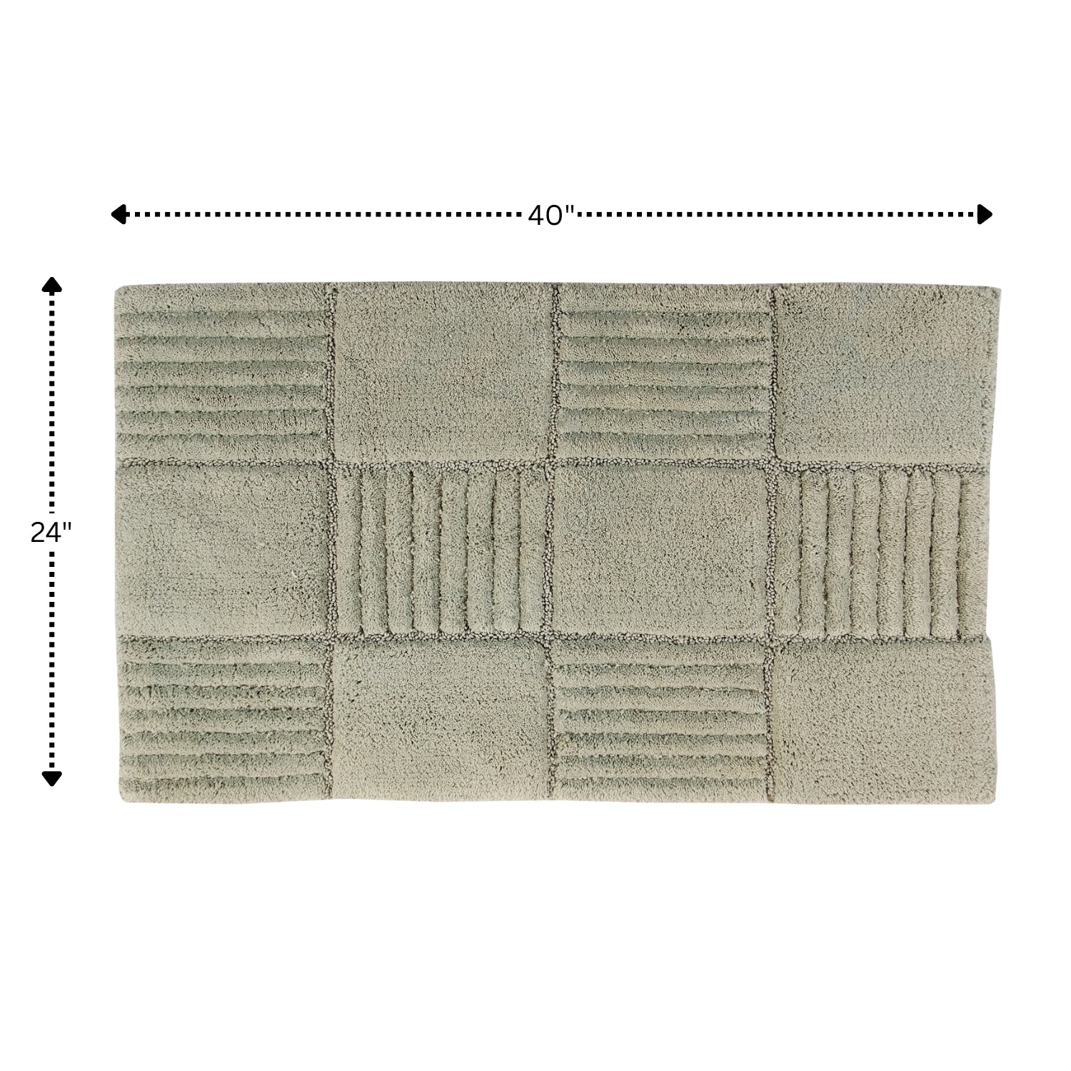 This unique checkerboard designed bath rug is made of 100% soft plush cotton and is super soft to the touch with a dense lush pile. It has a non-skid back and is extremely absorbent and functional. The beautiful range of contempory colors will add an elegant look to any bathroom decor. Product Size: 24 x 40. Product Color: White, Ivory, Silver, Natural, Sage, Light Blue, Stone, Aqua.Chakkar Board Non Skid Back Bath Rug 24 x 40. Color: White, Ivory, Silver, Natural, Sage, Light Blue, Stone, Aqua. 220 GSF Non Skid Back Machine wash with like colors, tumble dry low heat. 100% Cotton