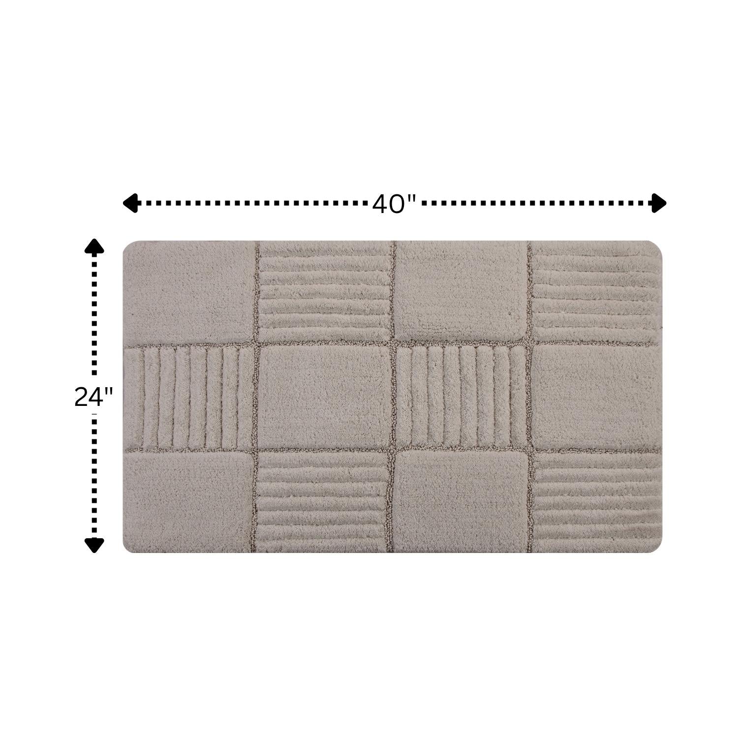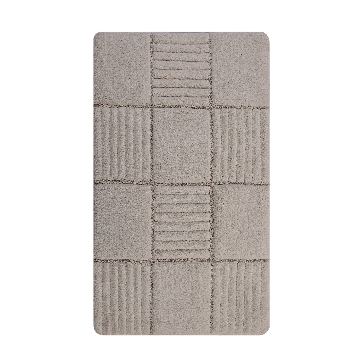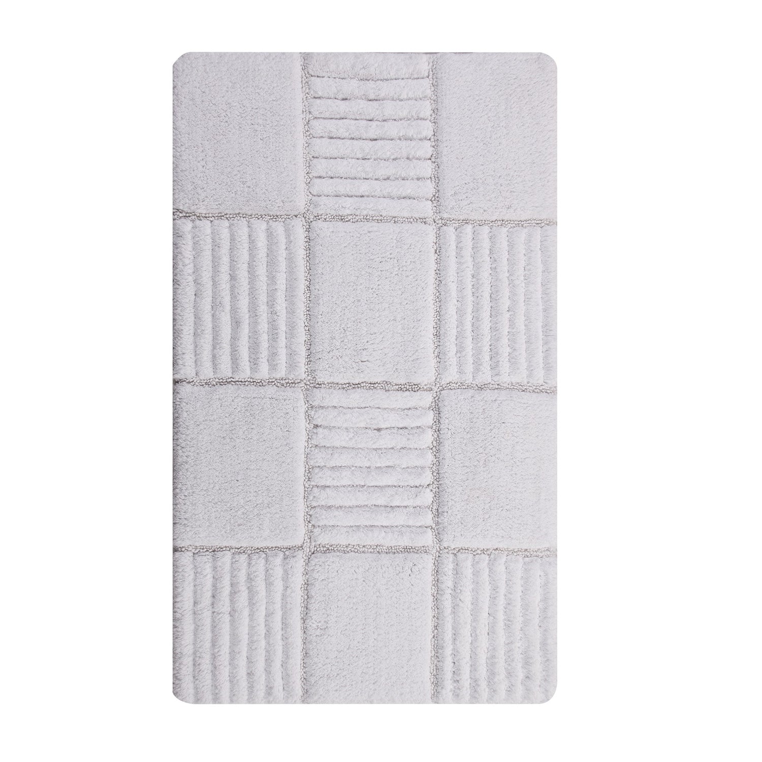 This unique checkerboard designed bath rug is made of 100% soft plush cotton and is super soft to the touch with a dense lush pile. It has a non-skid back and is extremely absorbent and functional. The beautiful range of contempory colors will add an elegant look to any bathroom decor. Product Size: 24 x 40. Product Color: White, Ivory, Silver, Natural, Sage, Light Blue, Stone, Aqua.Chakkar Board Non Skid Back Bath Rug 24 x 40. Color: White, Ivory, Silver, Natural, Sage, Light Blue, Stone, Aqua. 220 GSF Non Skid Back Machine wash with like colors, tumble dry low heat. 100% Cotton