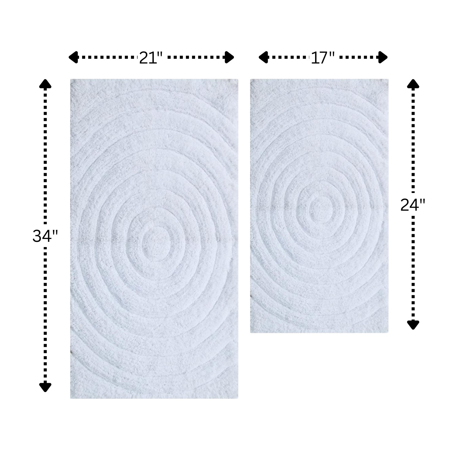 This luxurious circle pattern 2 pc bath rug set is made of 100% soft plush cotton. It has a super soft feel which is the ultimate in comfort while being very absorbent and it has a non-skid back which makes it extremely functional. The wonderful array of colors will add an elegant touch to any bathroom decor. Available size: 17x24 and 21x34". Color: White.
