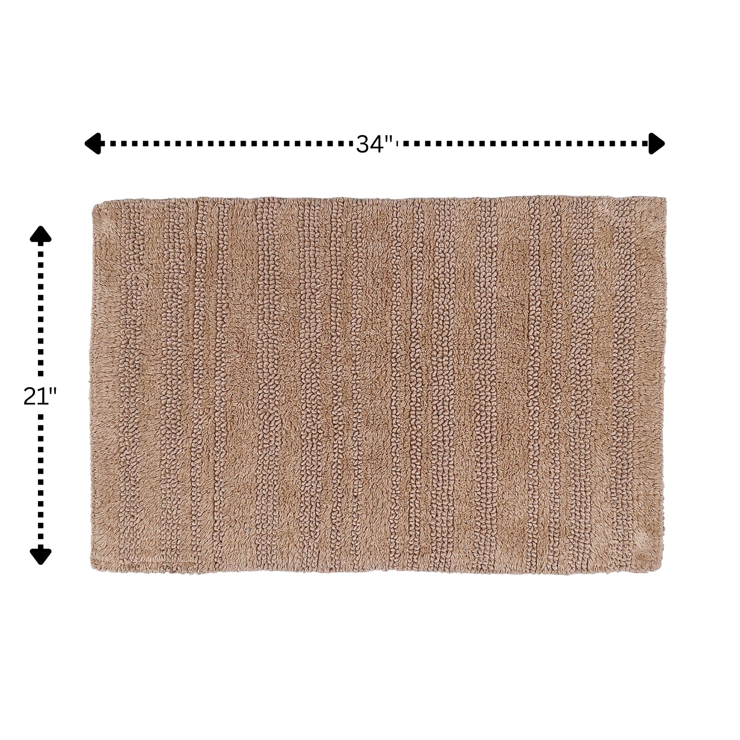 Knightsbridge Luscious Textured Striped All Season Soft Plush Cotton Reversible & Soft Bath Rug Natural