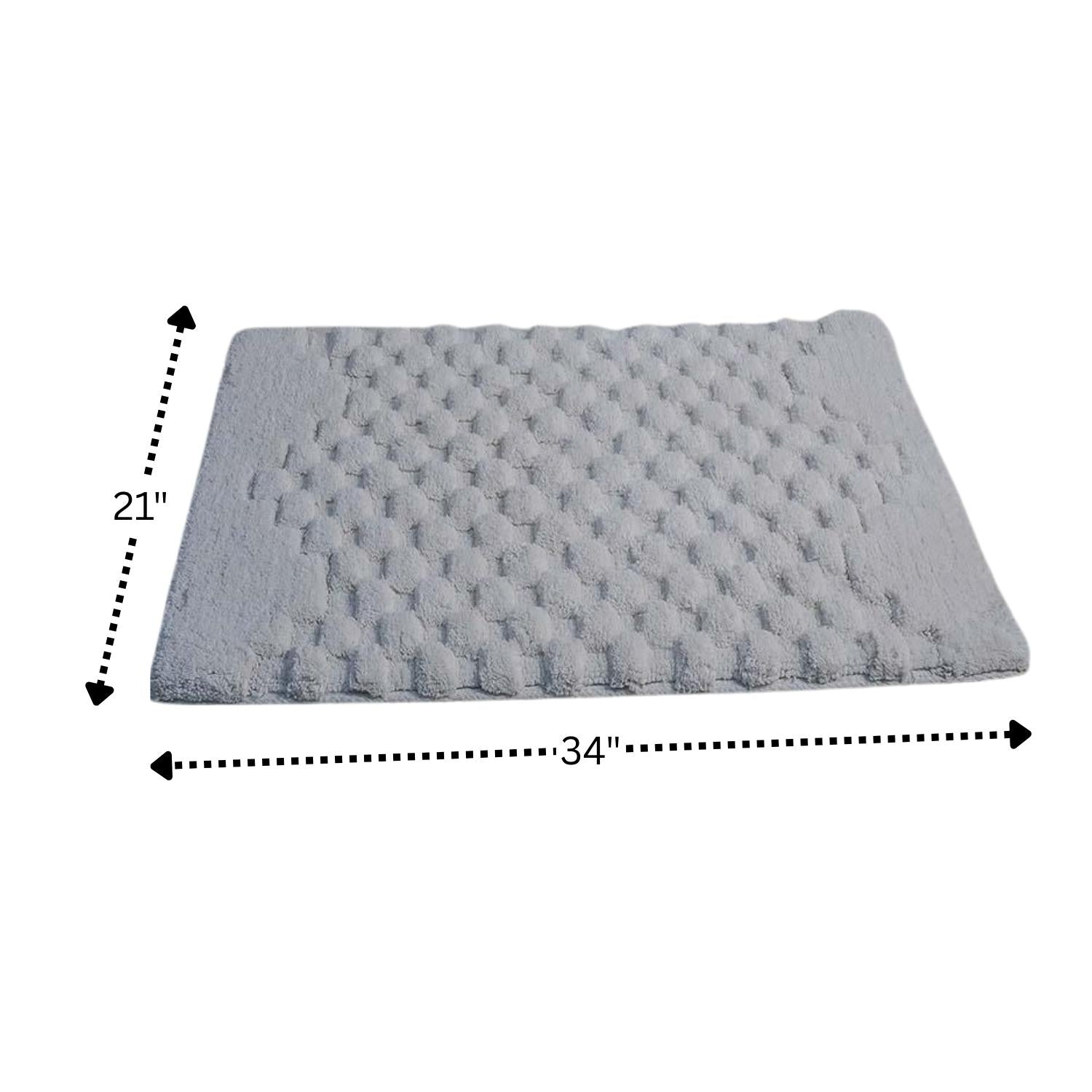 Experience the ultimate in comfort and functionality with this luxurious block pattern bath rug. Made from 100% soft plush cotton, this rug provides a luxurious feel that is gentle on your feet, making it the perfect addition to your bathroom décor. The highly absorbent nature of the rug ensures that your bathroom floor remains dry and slip-free, while the non-skid back adds an extra layer of safety and functionality. The block pattern design adds a touch of sophistication and elegance to your bathroom, making it a versatile piece that complements a wide range of styles. The high-quality cotton material not only provides durability and longevity but also makes it easy to clean and maintain. Whether you're stepping out of the shower or getting ready for the day ahead, this bath rug is the perfect choice to give your bathroom a luxurious and functional upgrade. Indulge in the comfort and style of this block pattern bath rug and make your bathroom a true oasis of relaxation.Made from soft and plush cotton material for comfort and absorbency after bathing or showering. The luxurious texture of the rug provides a spa-like experience in your own bathroom. The cotton material is also durable and long-lasting. Features a fashionable sculptured border design that adds a touch of elegance and style to your bathroom decor. The intricate design of the border is visually appealing and creates a focal point in your bathroom. It has non-slip backing that helps to prevent slips and falls while using the rug, providing added safety for you and your family. The rug stays securely in place, even on wet surfaces, thanks to the non-slip backing. The super soft and absorbent nature of the rug provides the ultimate in comfort, making it a must-have for your daily bath routine. Care Instructions: Machine washable and tumble dry on low heat for easy maintenance and long-lasting use. The rug is easy to clean and maintain. Do not bleach or iron the rug, as this can damage the fabric and affect the quality of the rug over time.