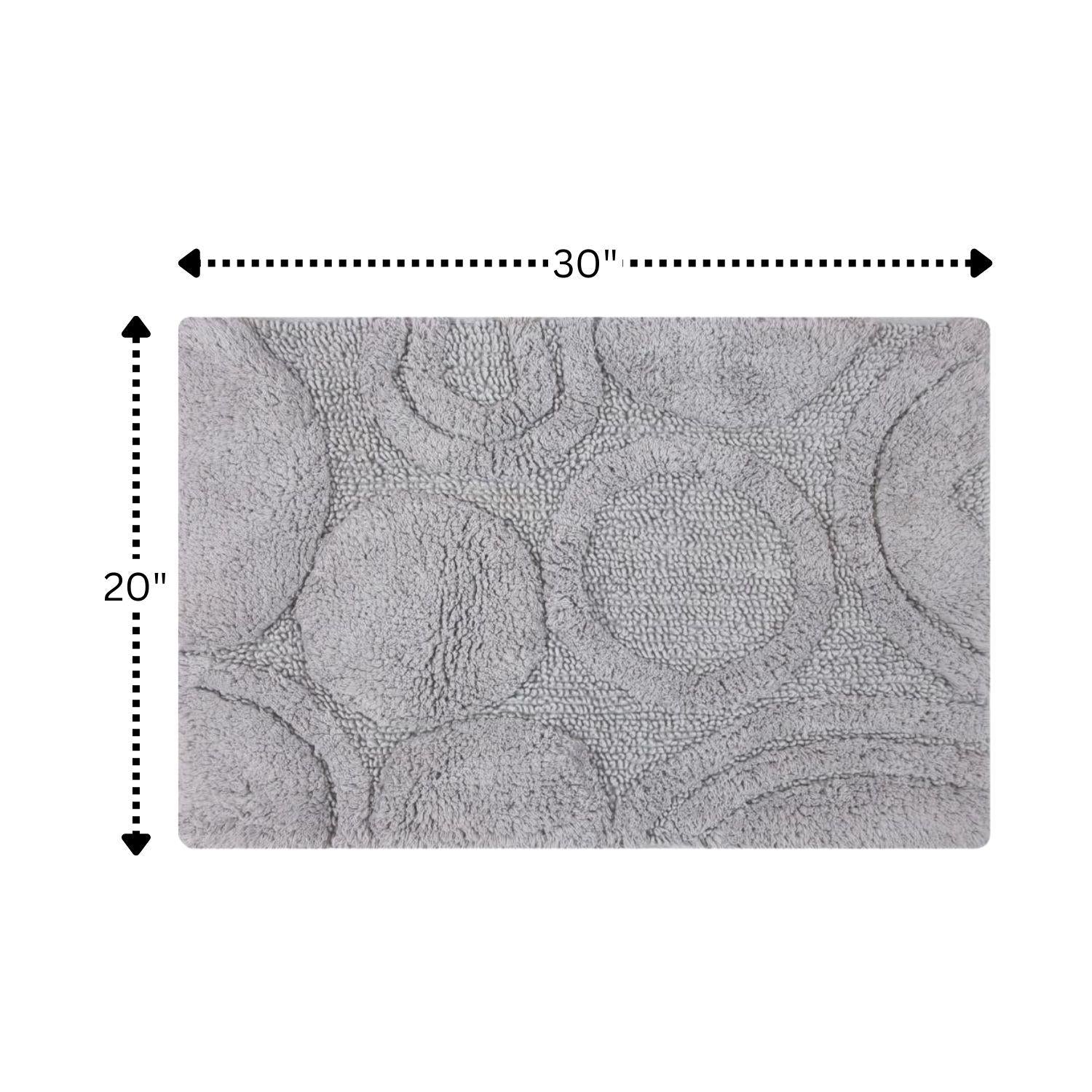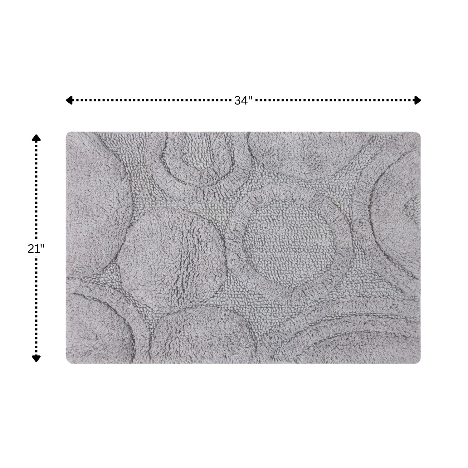 This luxurious 100% soft plush cotton bath rug features an all over circle design with a non-skid back. It's super soft to the touch with a dense lush pile. It's the ultimate in comfort while being extremely absorbent and functional. The elegant range of contempory colors will enhance any bathroom decor. Available Size: 17x24", 20x30", 21x34" and 24x40". Color: Silver.