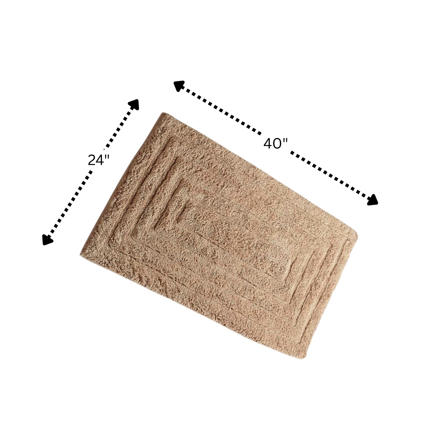 Enhance the look and feel of any bathroom with this traditional racetrack design cotton bath rug. Crafted with a dense and lush pile, this rug is not only soft to the touch but also highly absorbent, making it the perfect addition to your daily bath routine. The racetrack design adds a touch of classic elegance to your bathroom décor, while the high-quality cotton material ensures long-lasting durability and comfort. Whether stepping out of the shower or getting ready for the day ahead, this bath rug provides the ultimate combination of style and comfort. Upgrade your bathroom experience with this luxurious and functional bath rug.Made from soft and plush cotton material for comfort and absorbency after bathing or showering. The luxurious texture of the rug provides a spa-like experience in your own bathroom. The cotton material is also durable and long-lasting. Features a fashionable sculptured border design that adds a touch of elegance and style to your bathroom decor. The intricate design of the border is visually appealing and creates a focal point in your bathroom. It has non-slip backing that helps to prevent slips and falls while using the rug, providing added safety for you and your family. The rug stays securely in place, even on wet surfaces, thanks to the non-slip backing. The super soft and absorbent nature of the rug provides the ultimate in comfort, making it a must-have for your daily bath routine. Care Instructions: Machine washable and tumble dry on low heat for easy maintenance and long-lasting use. The rug is easy to clean and maintain. Do not bleach or iron the rug, as this can damage the fabric and affect the quality of the rug over time.