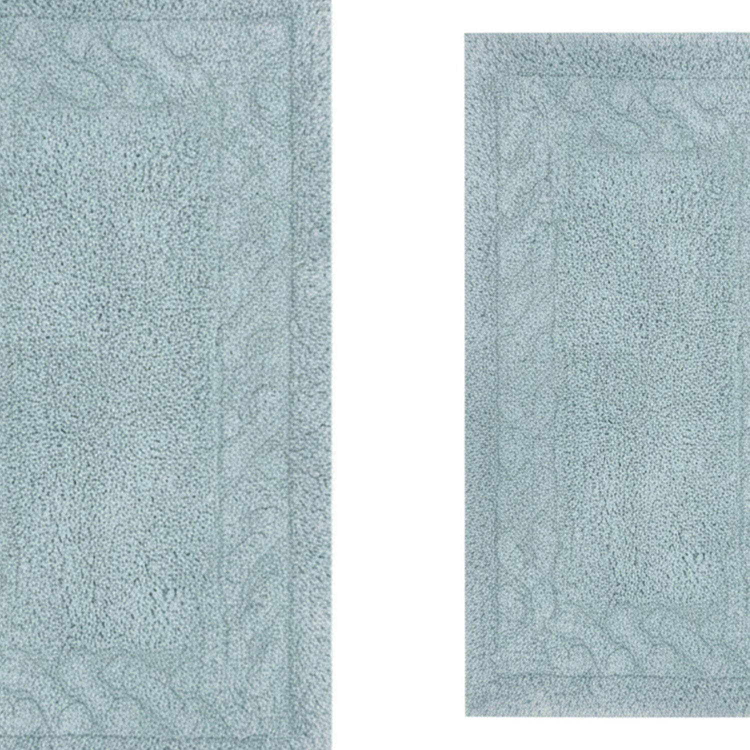 Knightsbridge Stylish And Comfortable Traditional Chain Design 2 PC Cotton Bath Rug Set 20"x30" & 24"x40" Light Blue