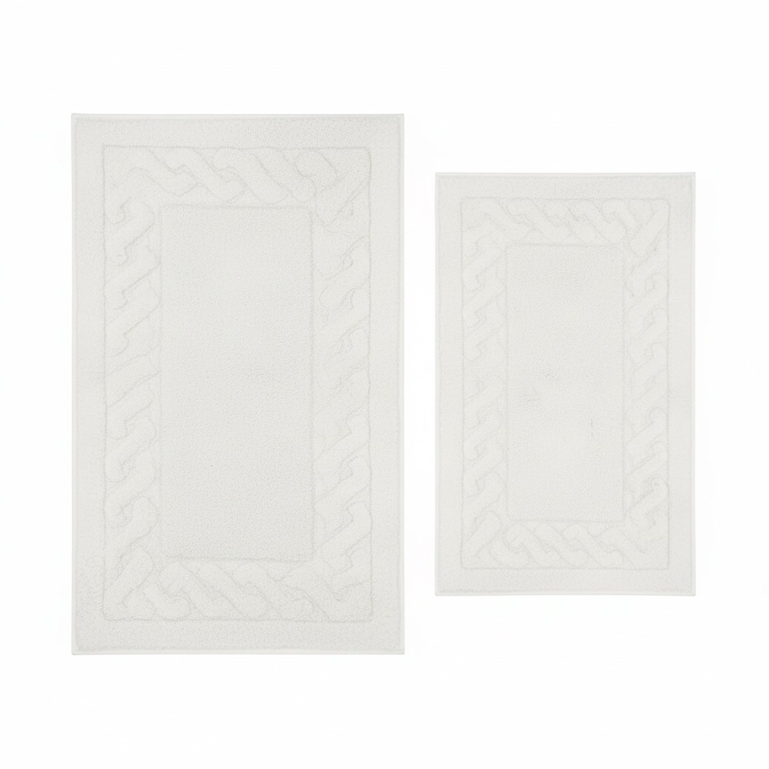 Knightsbridge Stylish And Comfortable Traditional Chain Design 2 PC Cotton Bath Rug Set 20"x30" & 24"x40" White