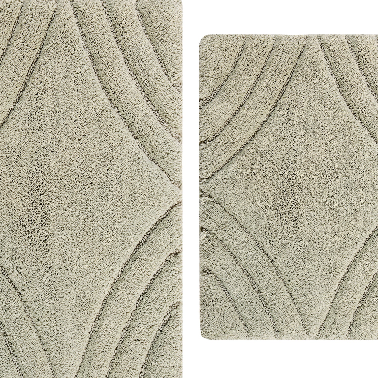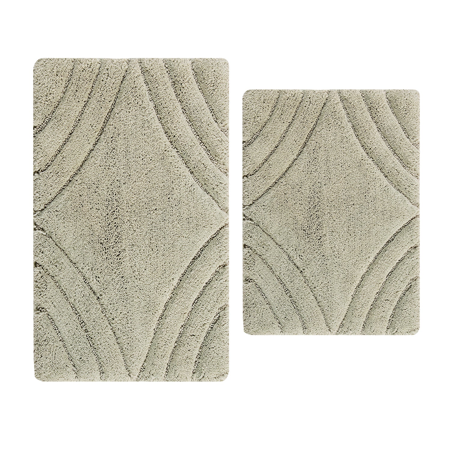 Knightsbridge Stylish And Comfortable Traditional Diamond Design 2 PC Cotton Bath Rug Set 20"x30" & 24"x40" Sage