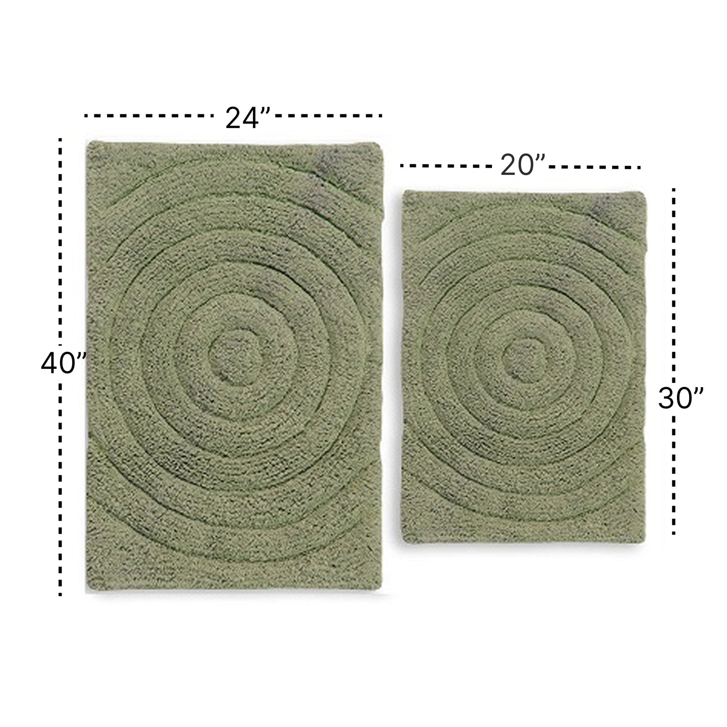 Enhance Your Bathroom With Knightsbridge Stylish And Comfortable All Season Traditional Echo Design 2 PC Cotton Bath Rug Set In Sage Color Featuring Plush Cotton And Dimensions Of 20" X 30" And 24" X 40", Adding Serenity, Comfort, And Elegance. The echo pattern introduces subtle texture, creating a visually appealing, cozy atmosphere. Machine-made for durability, this set provides absorbent, soft surfaces for all-season use. Ideal for everyday bathroom use, it delivers long-lasting comfort and aesthetic sophistication, enhancing both function and style.DURABLE MATERIAL:: Crafted from premium cotton, this Sage 20" x 30" & 24" x 40" rug set offers exceptional durability, plushness, and absorbency, retaining color and comfort over long-term use. INCLUDING ITEMS:: Two-piece set includes one 20" x 30" and one 24" x 40" rug in Sage, providing full floor coverage while offering a coordinated, cushioned surface for bathroom areas. VERSATILE DESIGN:: Echo pattern in Sage complements diverse bathroom styles, adding soft texture and understated elegance while providing a comfortable surface for daily use. REVERSIBLE STYLE:: Fully reversible, both rugs offer plush surfaces on either side, allowing flexible placement and extended lifespan of the rug set while maintaining softness. EASY MAINTENANCE:: Machine washable and quick-drying, these Sage cotton rugs retain absorbency, plush feel, and subtle Sage tone, ensuring easy cleaning and long-lasting quality.